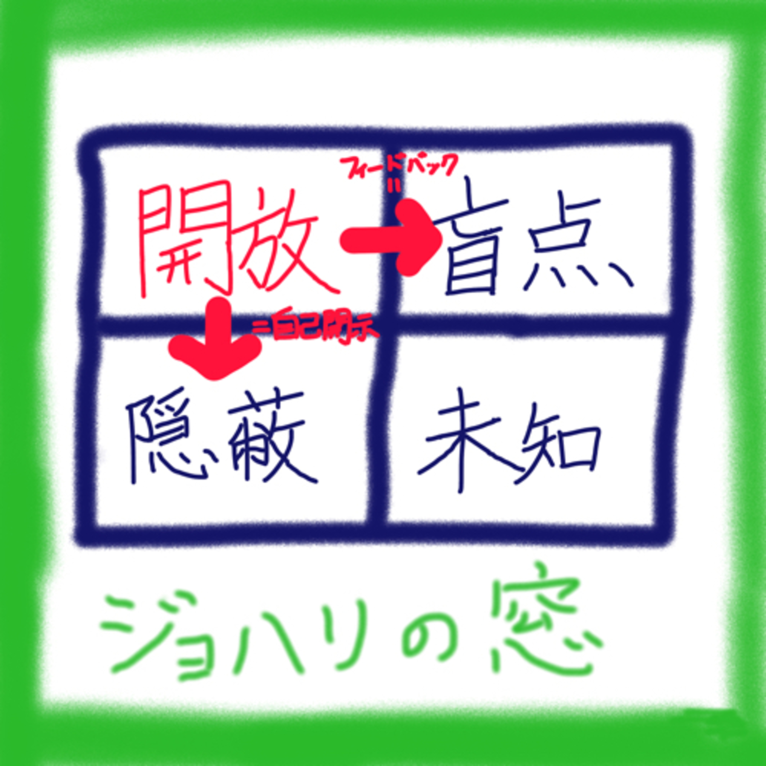 「ジョハリの窓」は就活とか企業研修とかで使われるみたいです!! こういう心理学とか自己分析の話すきなんだよなあー笑