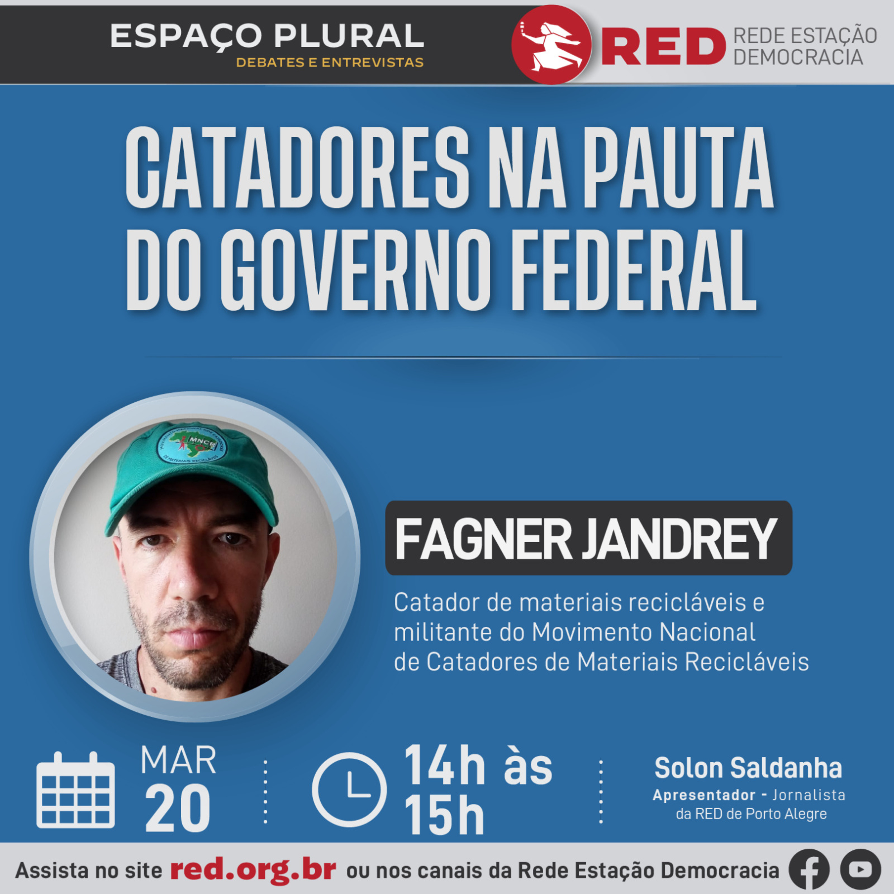 O primeiro episódio dessa semana, vamos receber o catador de materiais recicláveis e militante do Movimento Nacional de Catadores de Materiais Recicláveis, Fagner Jandrey.