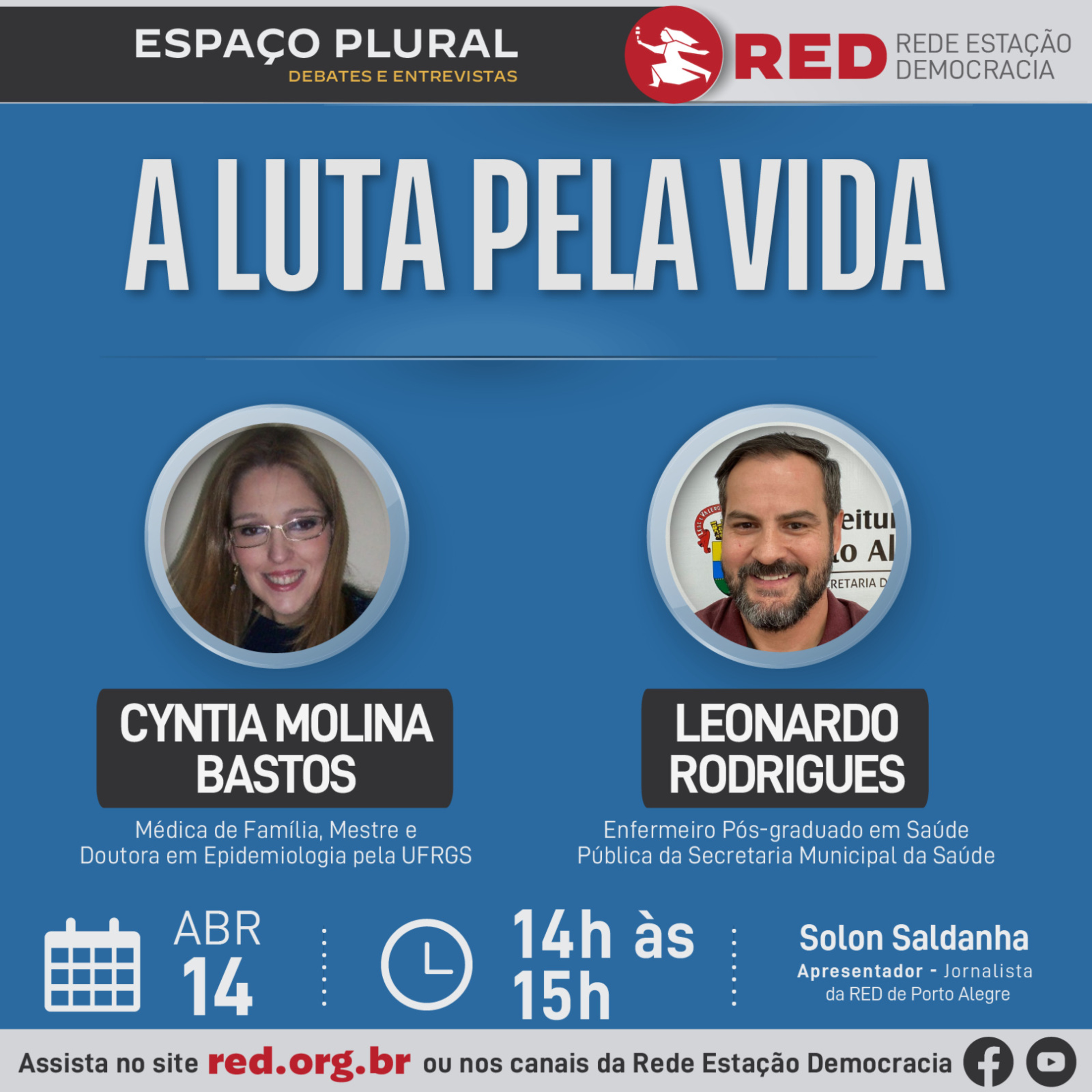 Nesta edição vamos receber o enfermeiro Pós graduado em Saúde Pública da Secretaria Municipal da Saúde, Leonardo Rodrigues; e a Médica de Família, Mestre e Doutora em Epidemiologia pela UFRGS, Cyntia Molina Bastos.