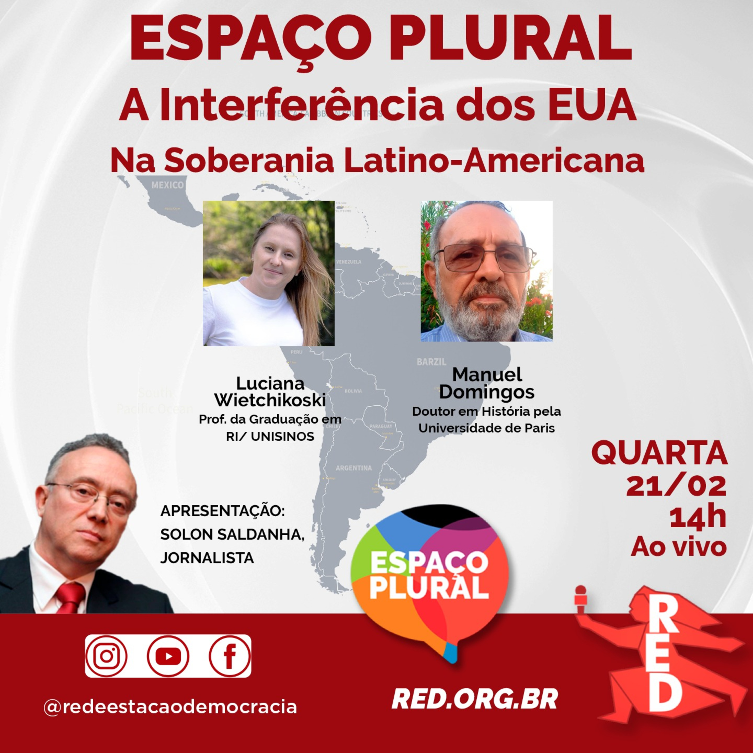 Nesta quarta-feira, dia 21 de fevereiro de 2024, o Programa Espaço Plural vai debater sobre a interferência do governo americano na soberania da América Latina.