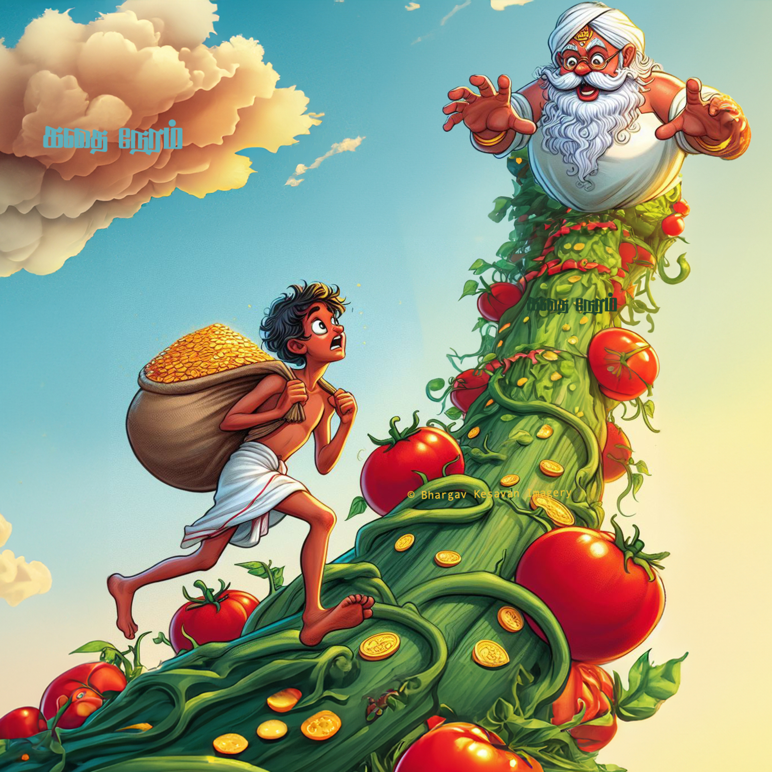 வேறு ஒரு கதைக்களத்தை தழுவி இந்தக் கதையை முழுதும் சொந்தமாக எழுதி, ஒலிவடிவில் வெளியிட்டு வருகிறேன். Jack and the Beanstalk என்ற கதை முந்நூறு ஆண்டுகளுக்கு முன்னர் எழுதப்பட்டது (அதன் தோற்றம் கிட்டத்தட்ட ஐந்தியாயிரம் ஆண்டுகள் வரை பின்னோக்கி செல்கிறது என்று அறியப்பட்டு ஆச்சர்யம் அடைந்தேன்!), அதில் தவறான சில விஷயங்களை சாகசங்கள் போல எழுதப்பட்டிருப்பதால், இக்காலத்திற்கு அது ஏற்றதாக எனக்கு தோன்றவில்லை. அதனால் அந்தக் கதைக்களத்தை மட்டும் எடுத்துக்கொண்டு "தாமுவும் தக்காளிக்கொடியும்" என்ற இந்தக் கதையை 07 நவம்பர் 2022 அன்று எழுதியுள்ளேன், உங்கள் குழந்தைகளுக்கு பிடிக்கும் என்று நம்புகிறேன். நன்றி.