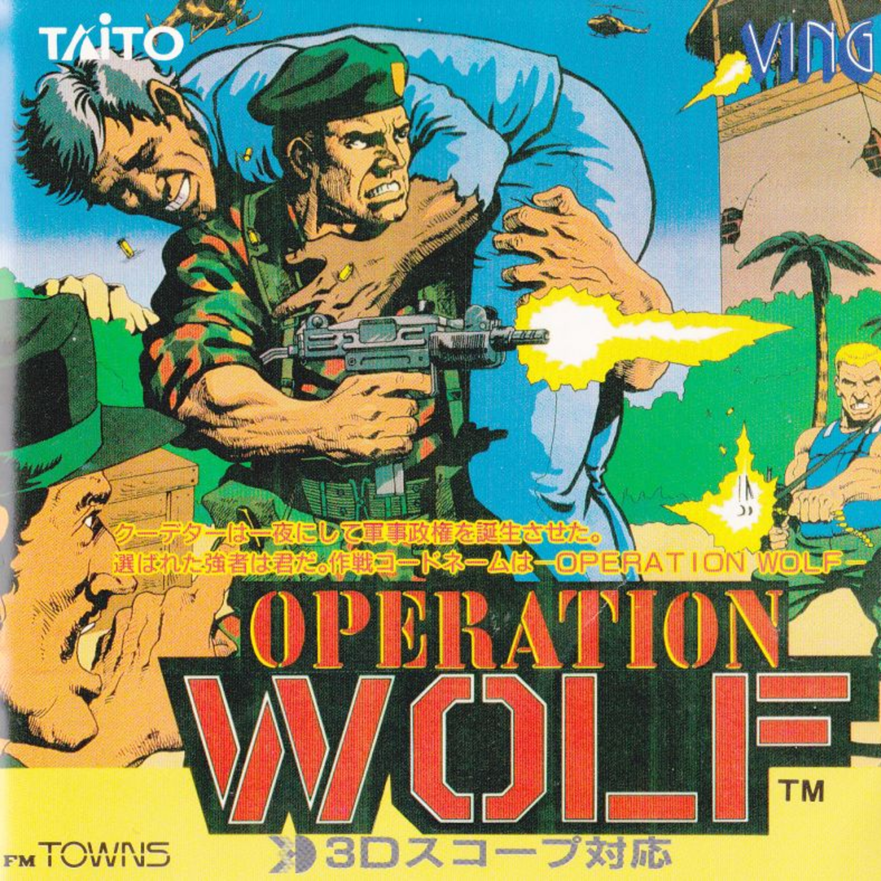 A group of desperate terrorists is keeping hostages in their jungle fortress. As a member of the elite tactical squad Operation Wolf, you must invade their hideout, destroy their operations, and get the hostages out alive! Maneuver through a series of missions and fight off soldiers, patrol boats, helicopters, and more.