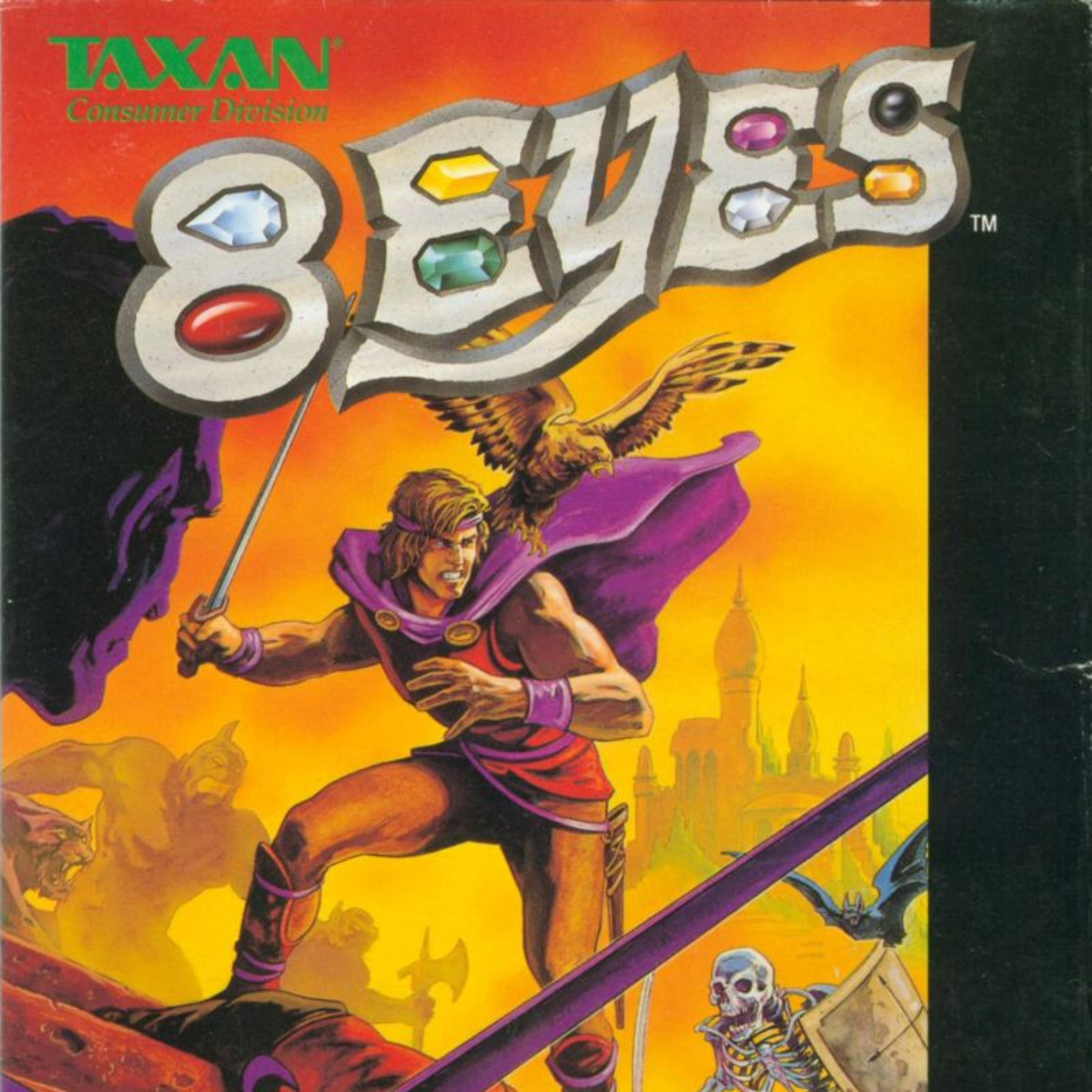 8 Eyes chronicles the adventures of Orin, the falconer, who must visit 8 different houses in 8 different lands and defeat 8 different guardians in order to collect 8 different jewels called eyes. It is a side-scrolling action/adventure game where the lead character can attack with a sword of somewhat limited reach. However, that is not the most powerful tool at his disposal - Orin also has his trusty falcon that he can send around the room to attack enemies or trigger remote switches.