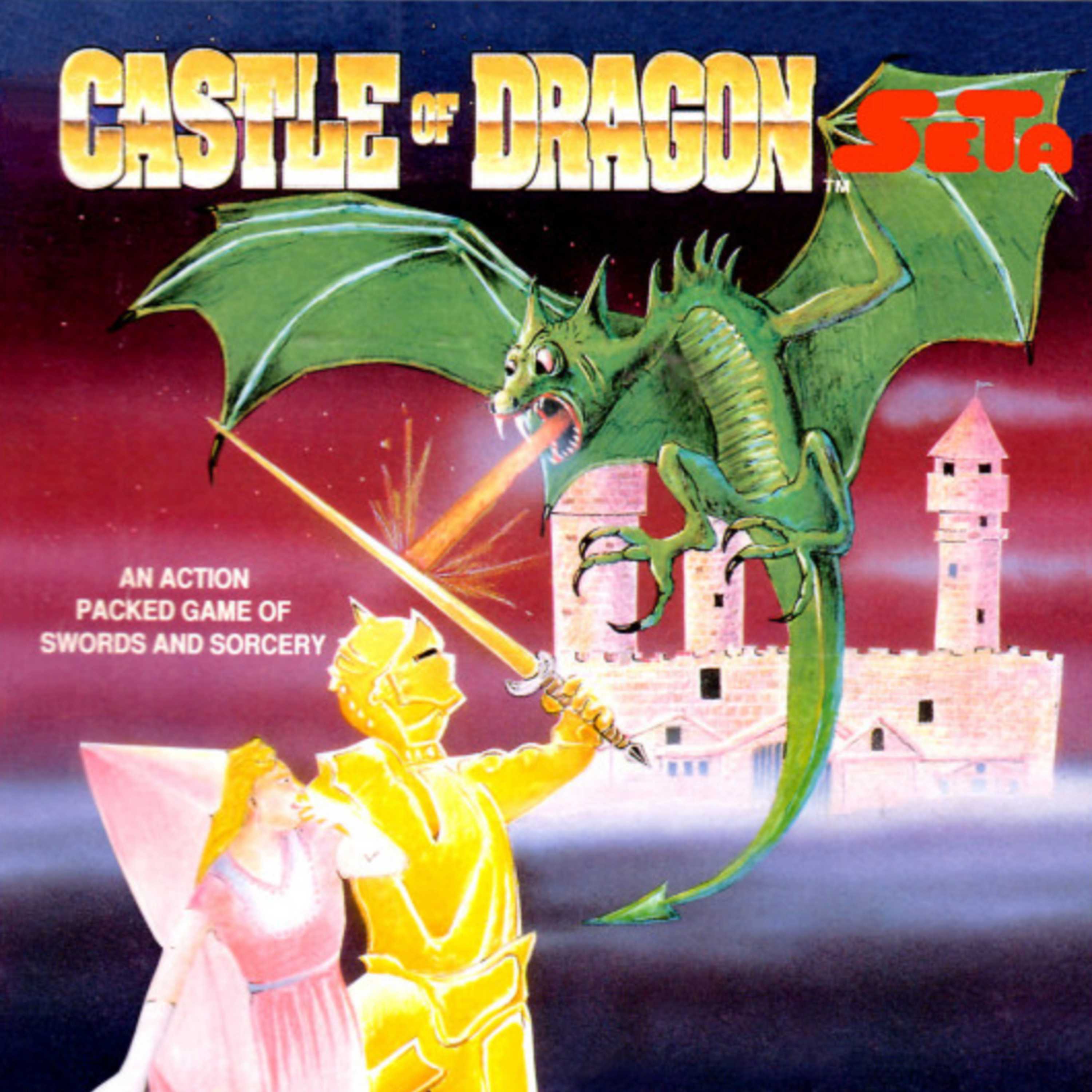 Castle of Dragon is a side-scrolling action adventure in which Geraden must hack and slash his way through the kingdom and destroy legions on Darklarza's forces. Initially equipped with a sword and a shield, plus the armor on his back, Geraden can upgrade to more powerful offensive and defensive options, as well as obtain various powerful magic spells.