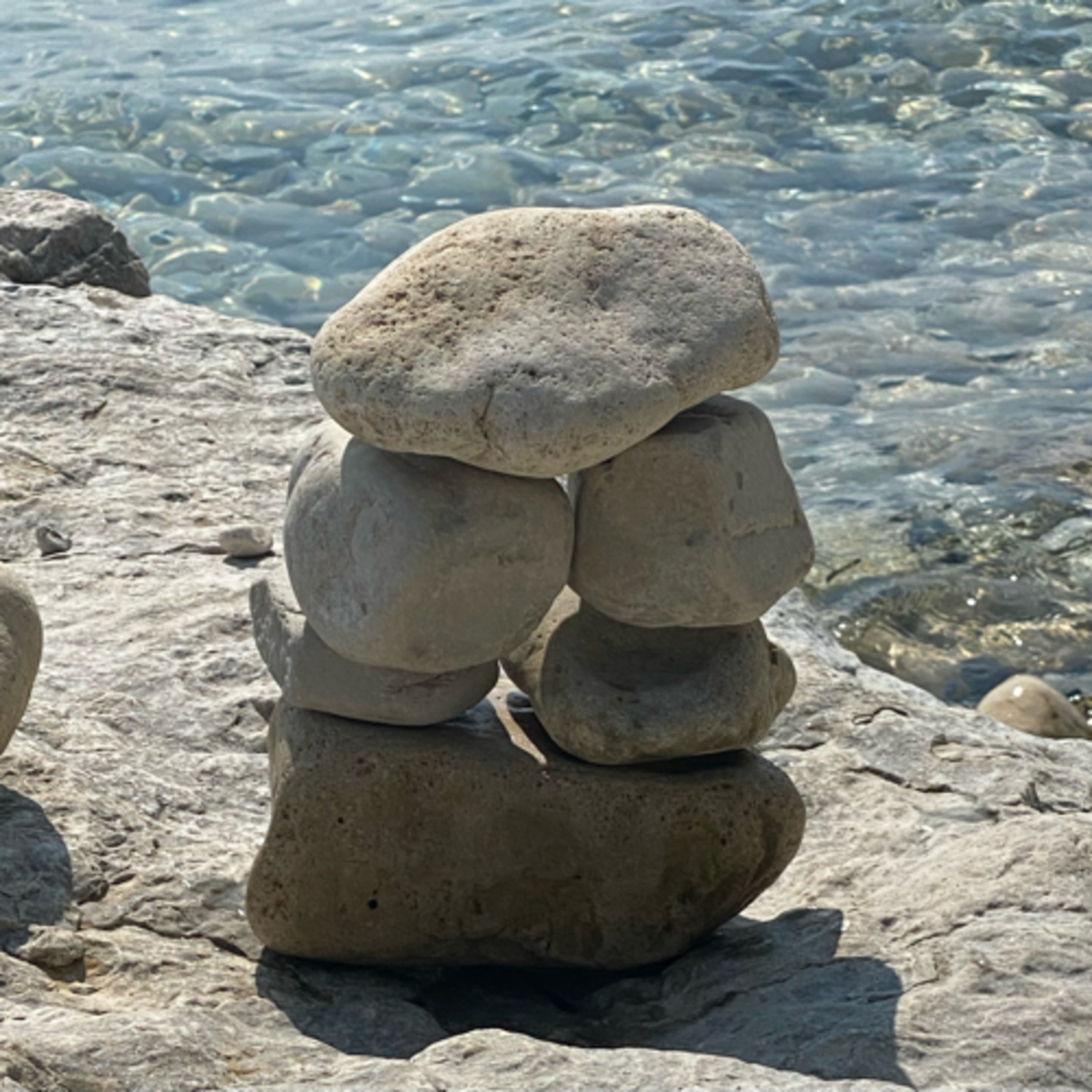 As I was stacking my pile, I thought of this passage I shared about and what a stack of rocks meant to them. So I was trying to stack as many as I could and realized that wasn’t going to work. At that time was when God told me “stack 6”. I fumbled around to find just the right rocks to use. I found two large rocks and four smaller rocks. I began to try and stack them. I tried a few different ways to stack them before I figured it out. The way I stacked them is in the picture below. Once I was done, God told me what I was looking at - what the pile meant.