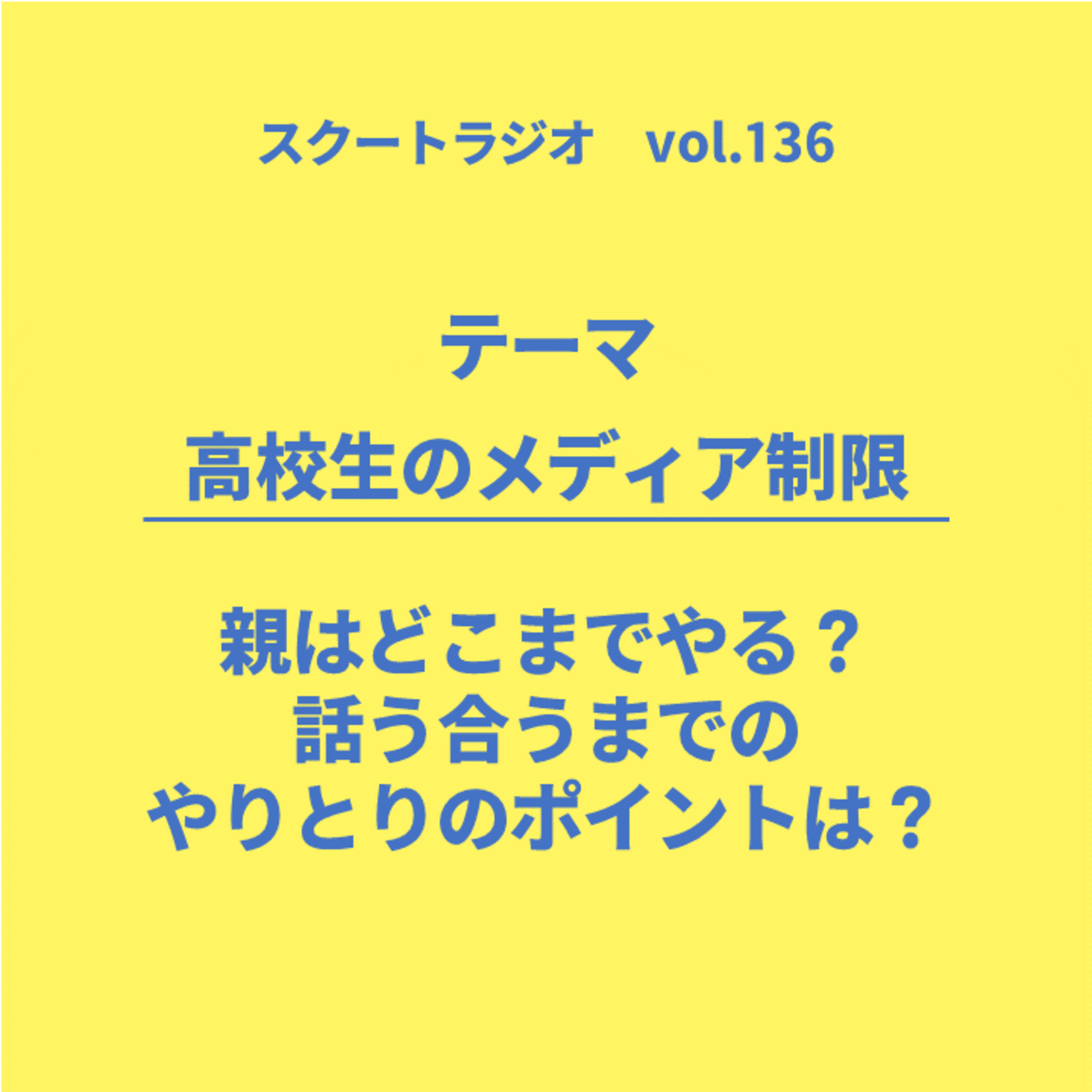 それについては以前もお話しましたが、今回は、高校生のメディアをどう制限する?という話。また、そこから誰もが思春期に直面するだろう悩みと親子の関わりのあり方などをあれこれお話しております。