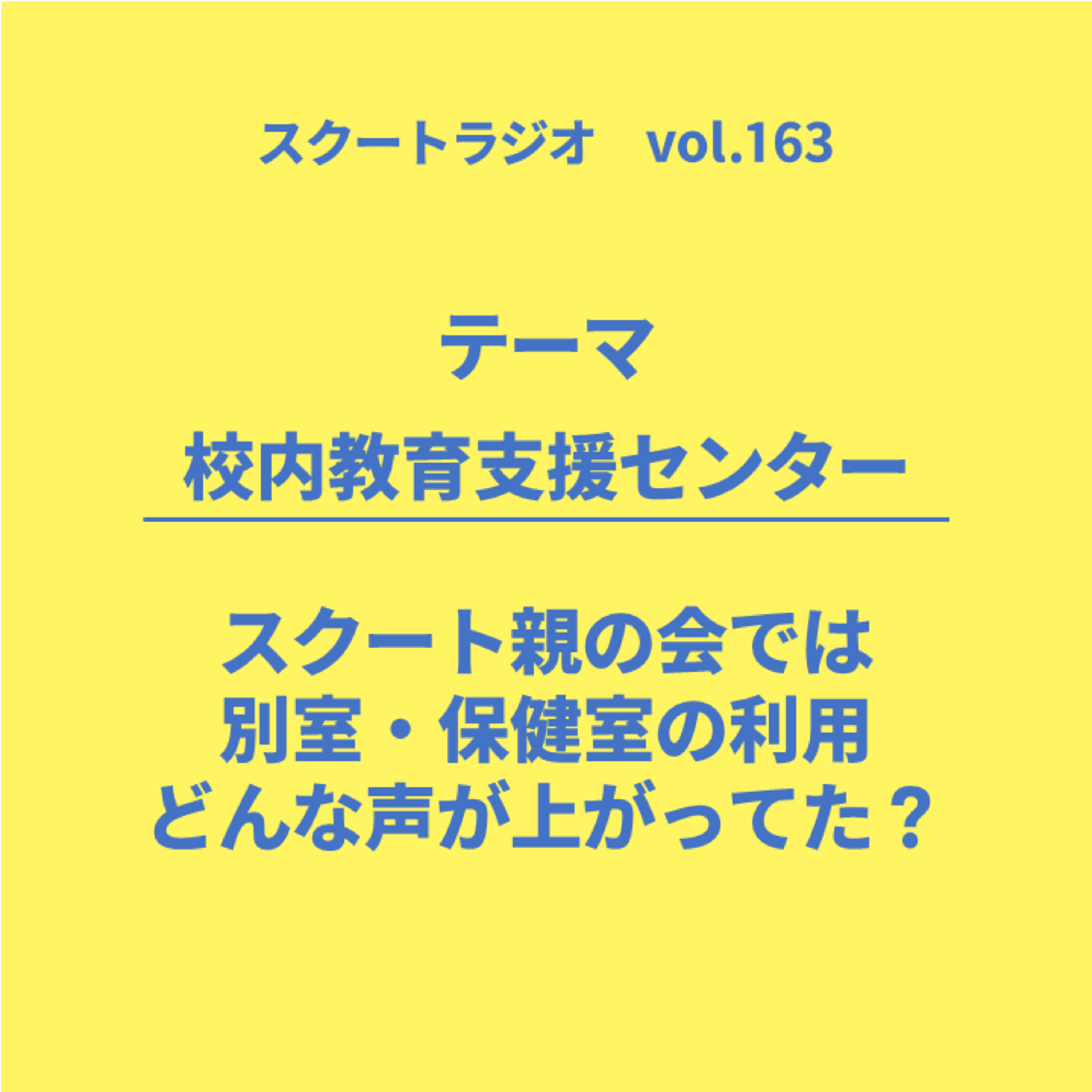 スクートが6年間実施してきた親の会で、別室や保健室などの利用に関しては、どのような意見が出ていたのか。今回は、その声を元に校内教育支援センターについて考えています。