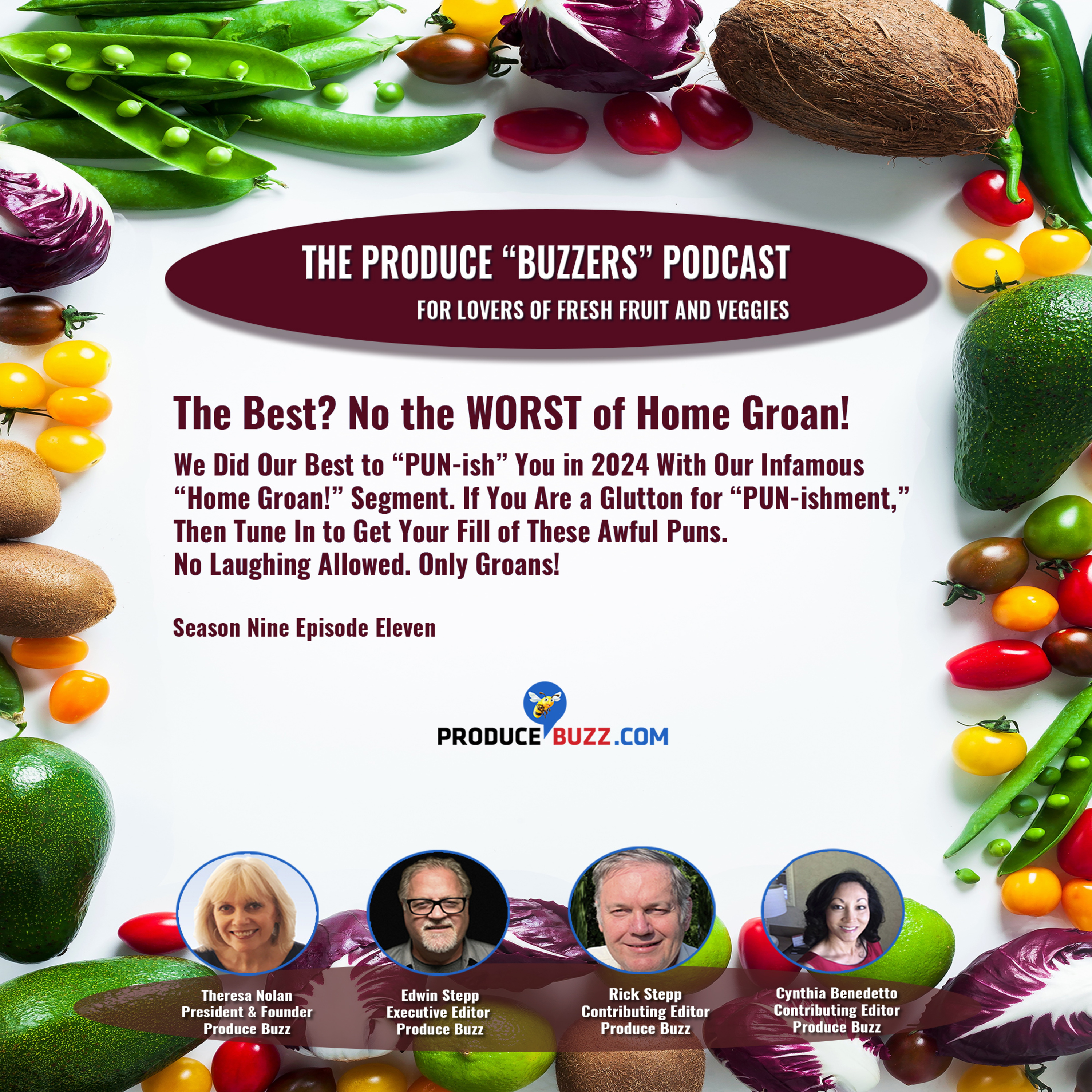 So as the new year begins, we thought we would look back on the most tortuous moments in 2024’s Produce Buzzers podcasts. Yes, our infamous “Home Groans.” We tried our best to “PUN-ish” you in every episode, with our fearless leader, Theresa Nolan’s terrible puns. We were going to call it “The Best of Home Groan” but the word “best” just doesn’t work with these awful attempts at humor. So we had to go with “The Worst of Home Groan.”