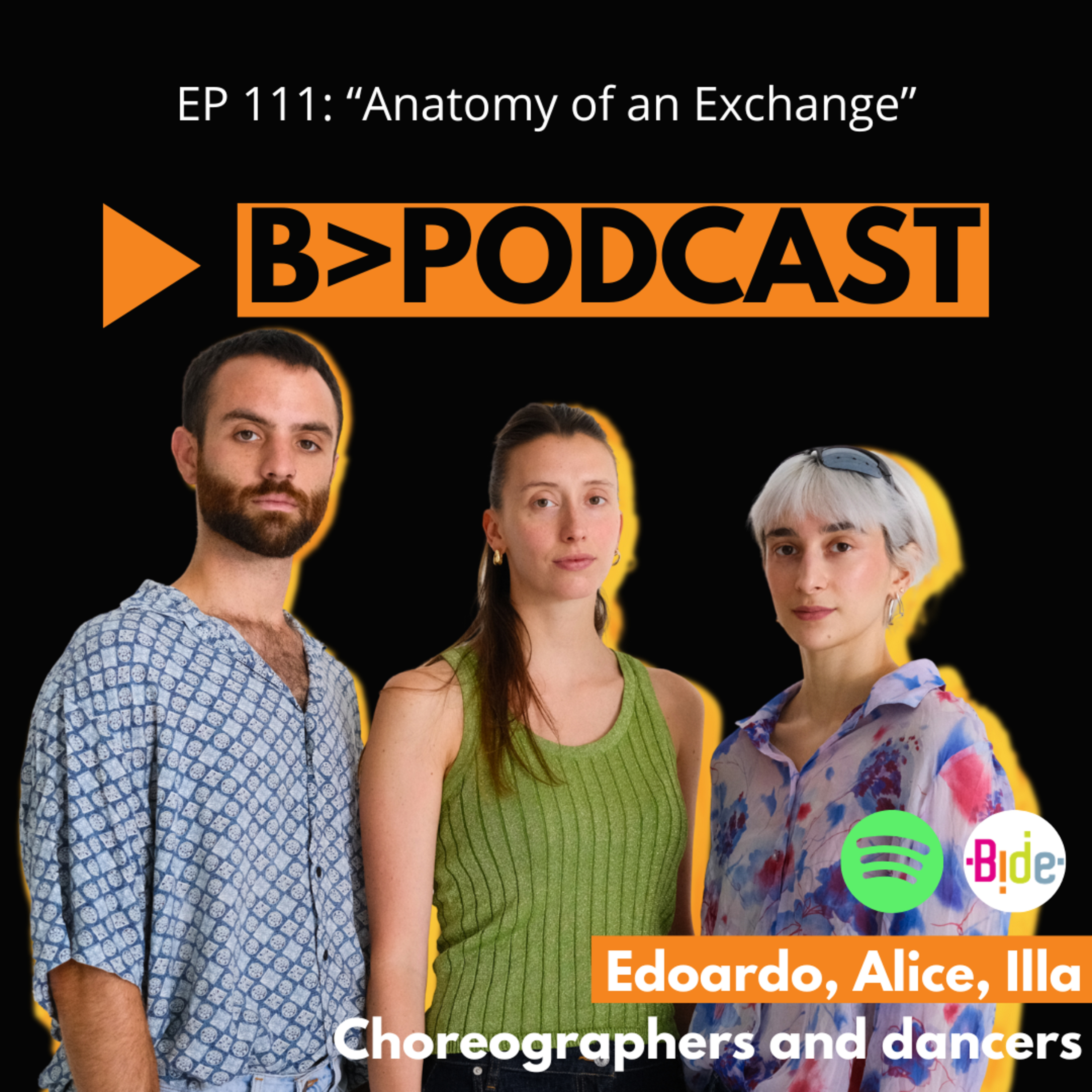 Episode 111 of our B Podcast. BIDE Artistic Director, Sebastián García Ferro, interviews edoardo, Alice, illa; choreographers and Dancers.