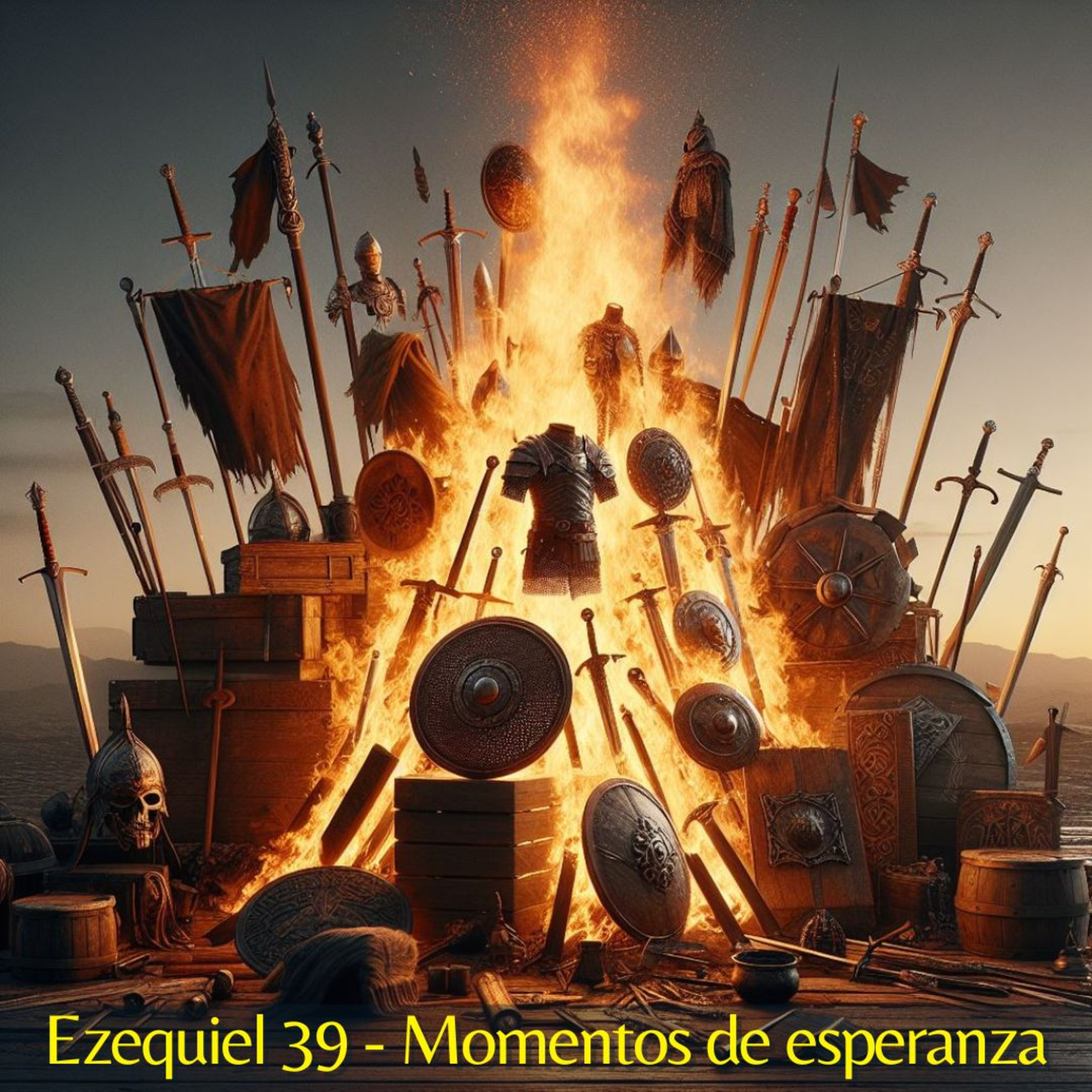 Y los moradores de las ciudades de Israel saldrán, y encenderán y quemarán armas, escudos, paveses, arcos y saetas, dardos de mano y lanzas; y los quemarán en el fuego por siete años.