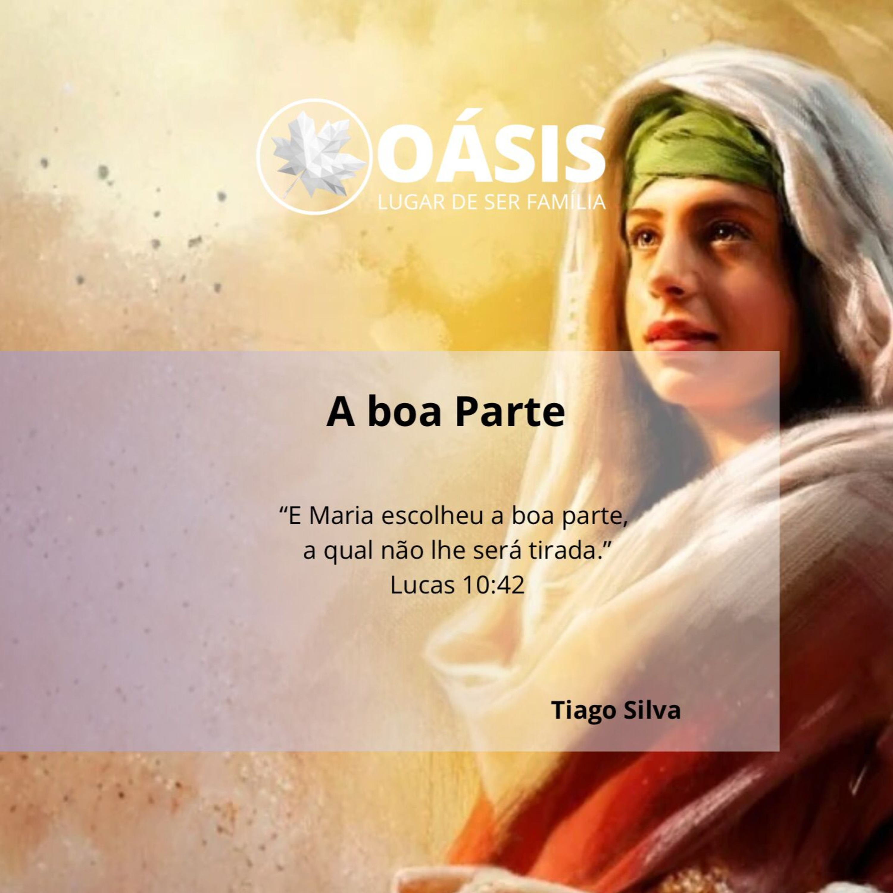 " E maria escolheu a boa parte, a qual não lhe será tirada."