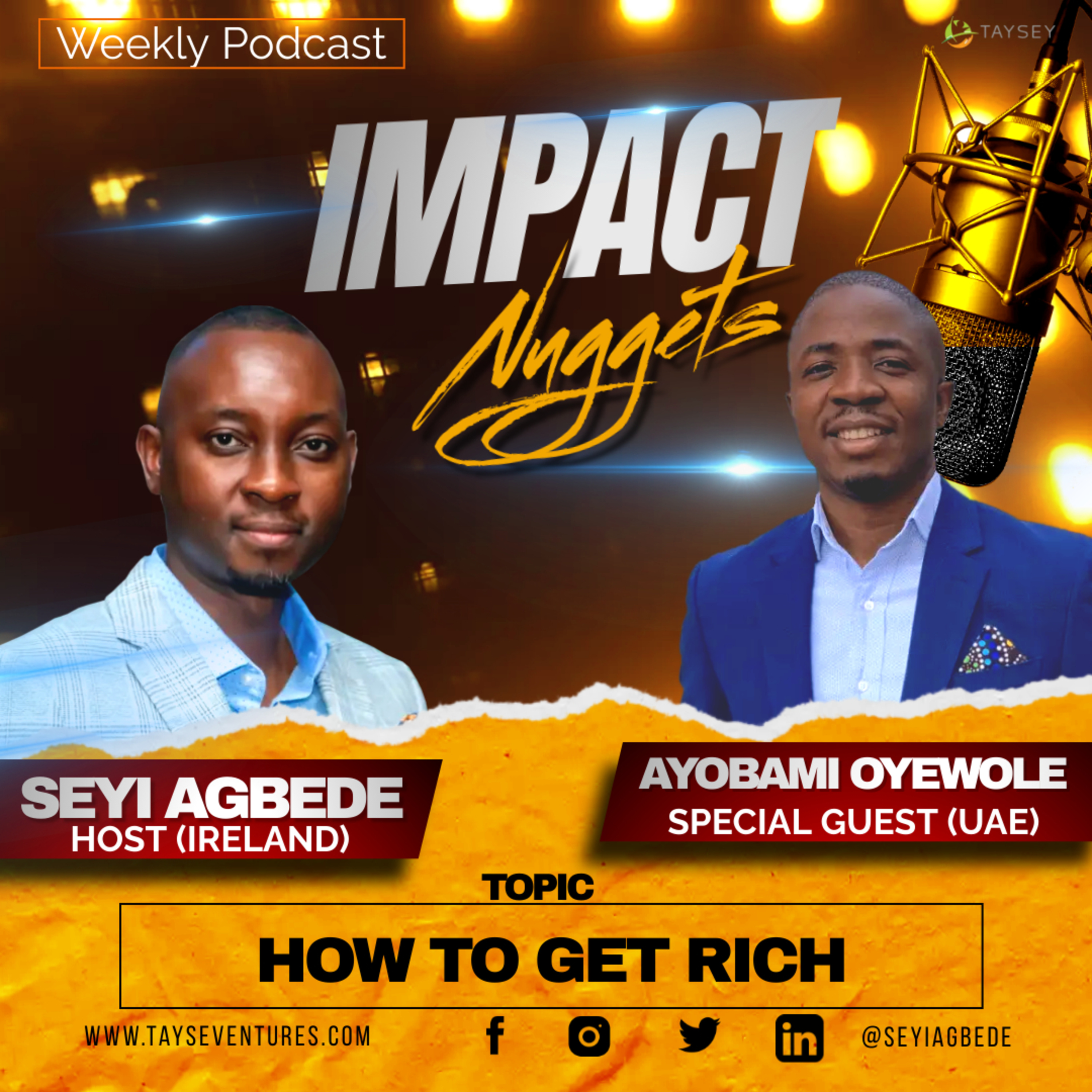 In this episode of our podcast, we're thrilled to have Ayobami Oyewole, a renowned Speaker, Writer, and Expert in Anxiety-Free Finance based in the UAE. He shares his insights and strategies on "How to get Rich," including understanding assets and liabilities, secret attitudes of getting rich, and a WISPER model that works.