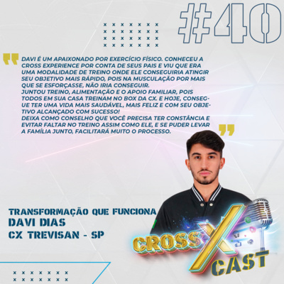 Davi é um apaixonado por exercício físico. Conheceu a Cross Experience por conta de seus pais e viu que era uma modalidade de treino onde ele conseguiria atingir seu objetivo mais rápido, pois na musculação por mais que se esforçasse, não iria conseguir.