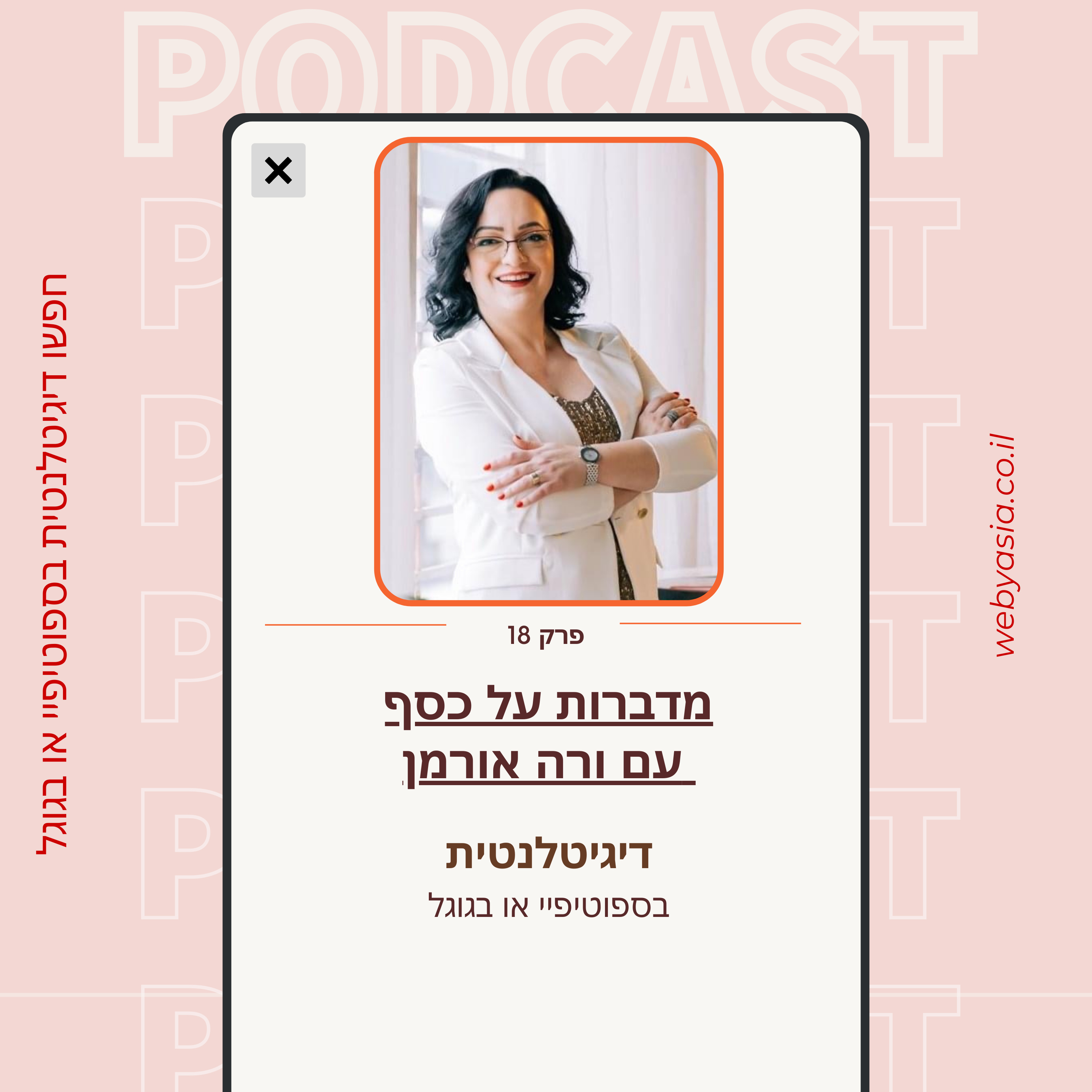 היא מספרת לנו בפרק את הסיפור שלה ועל הדרך אני שואבת ממנה טיפים ומידע ובעיקר מגלה שהבעיות של כולנו הן די זהות