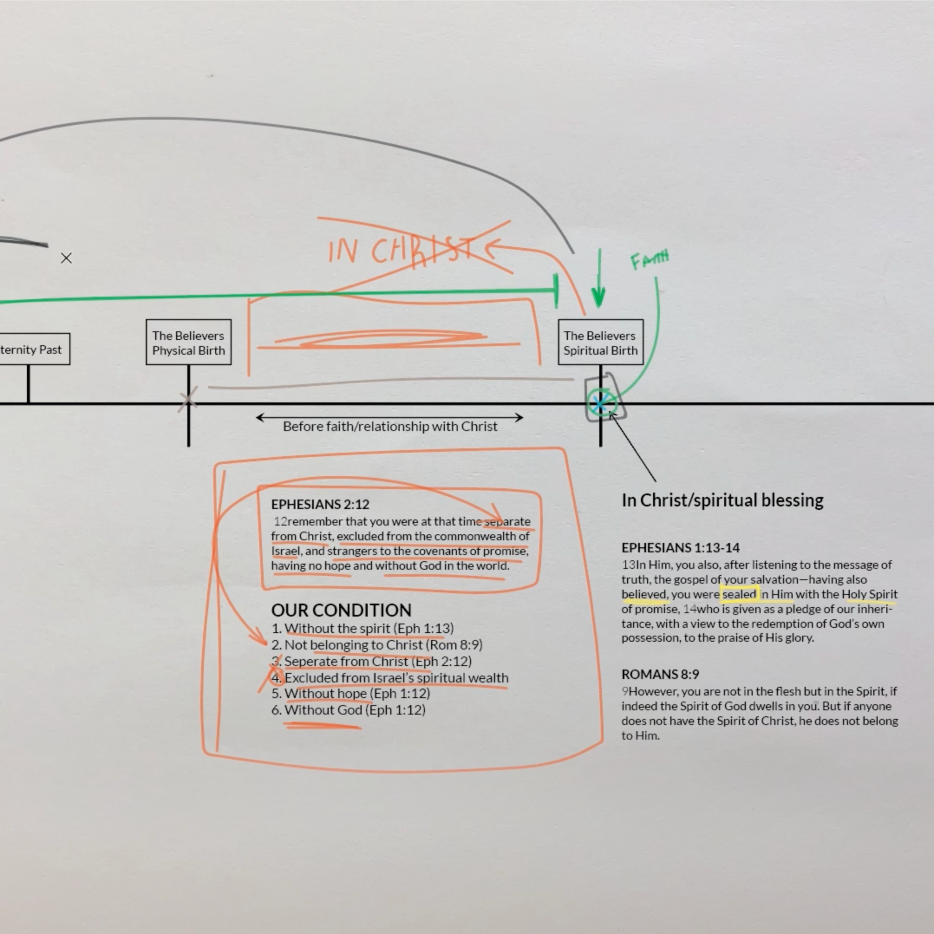Being chosen by God is a spiritual blessing, and Ephesians 1 says that God has blessed us with every spiritual blessing IN CHRIST. This means that the moment in time where believers receive every spiritual blessing (including being chosen) is the point in time when we come to be in union with Jesus Christ. So at what point in time does this take place for believers? The answer to this question sheds a lot of light on what it looks like for believers to be chosen by God.