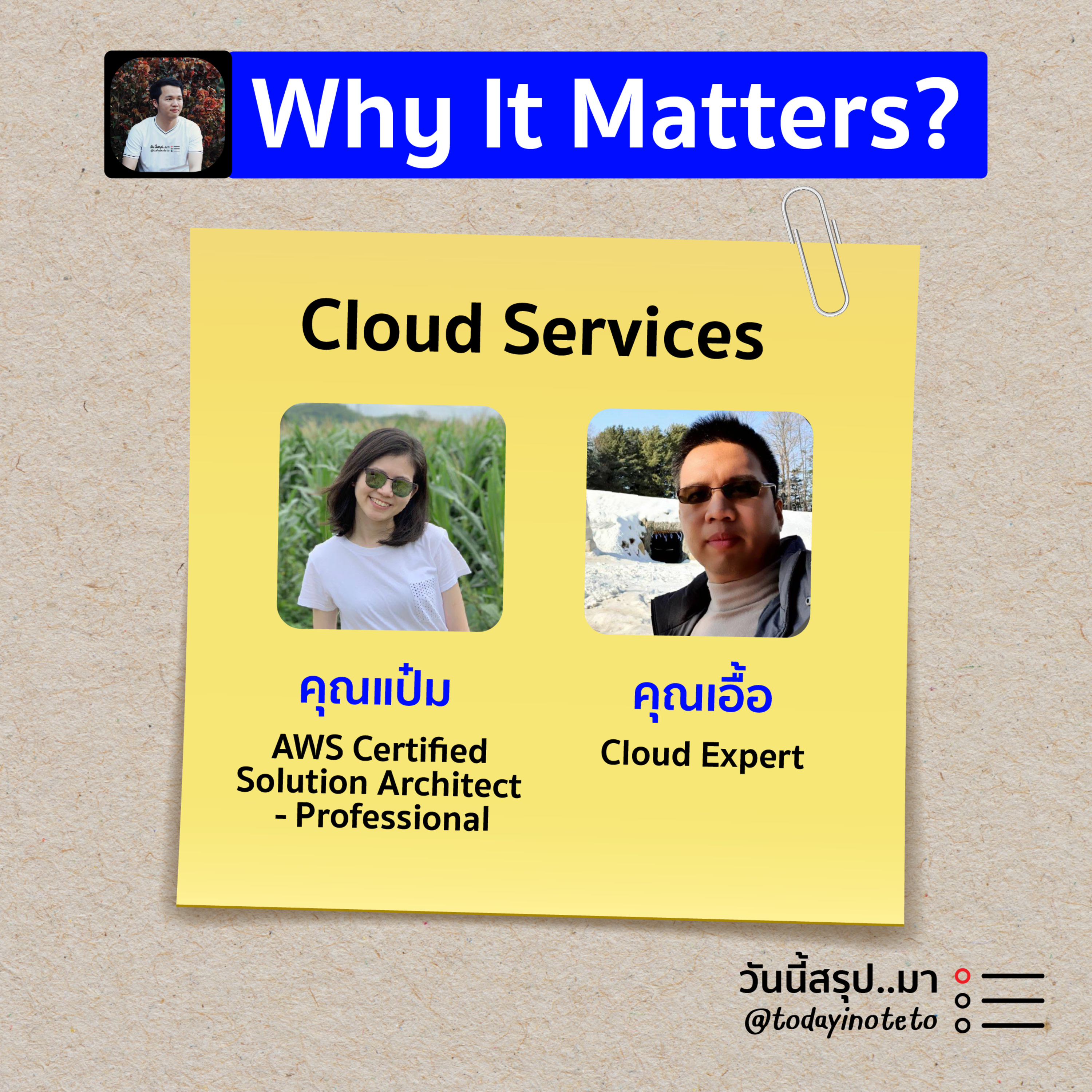 📝Why It Matters? ทำไม...ถึงสำคัญ “Cloud Service” คืออะไร ทำไมถึงสำคัญ เหมาะกับใครบ้าง และถ้าอยากจะเริ่มทำ ควรทำอย่างไร ร่วมพูดคุยกับ คุณแป๋ม Professional Service Manager, True IDC & AWS Certified Solution Architect - Professional และคุณเอื้อ Cloud Expert | ดำเนินรายการโดย พี พนิต เจ้าของเพจ “วันนี้สรุป..มา”