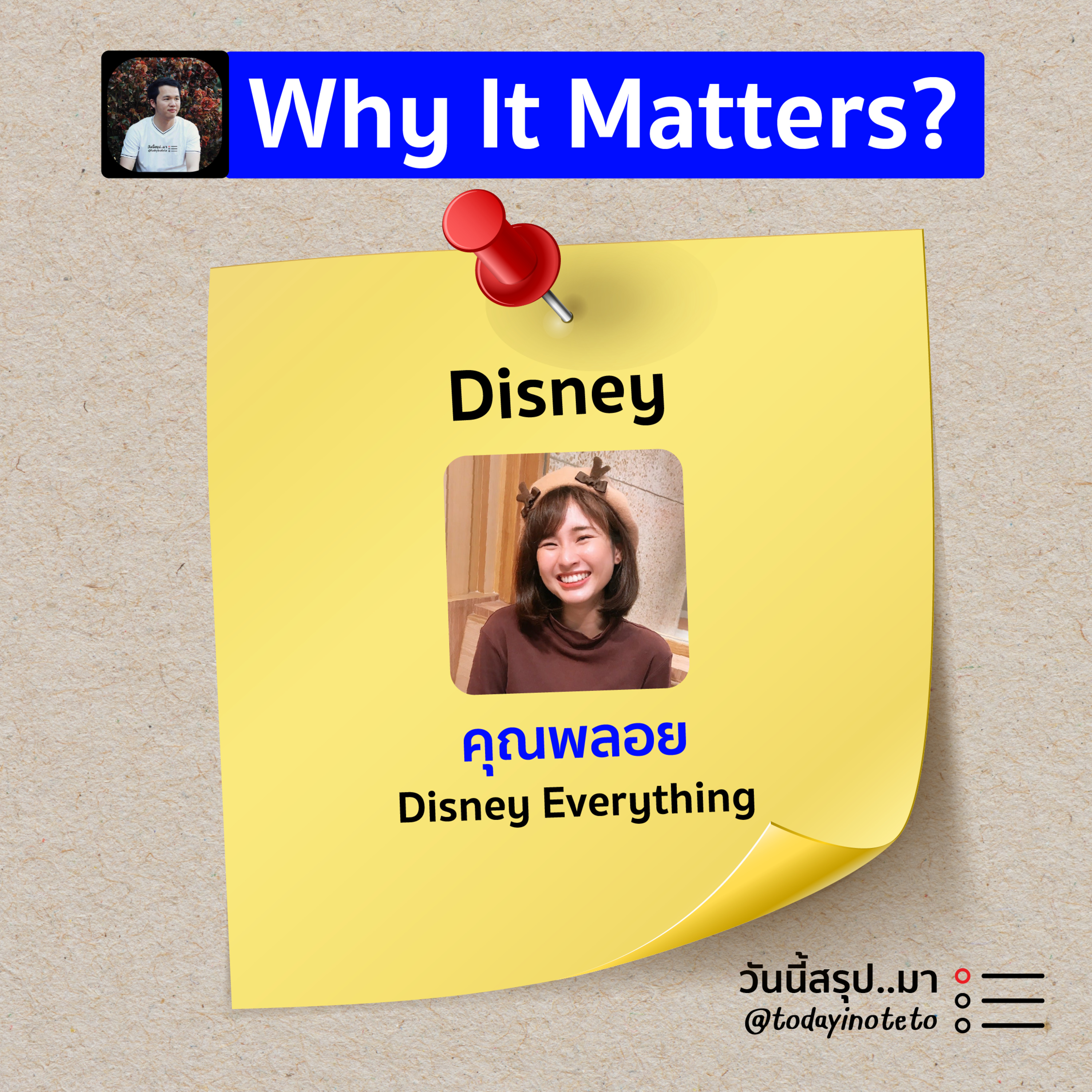 📝Why It Matters? ทำไม...ถึงสำคัญ “Disney” คืออะไร ทำไมถึงสำคัญ เหมาะกับใครบ้าง และถ้าอยากเริ่มดูหรือศึกษา มีอะไรแนะนำบ้าง มาร่วมพูดคุยกับคุณพลอย ผู้หลงใหลในดิสนีย์ และเจ้าของเพจ Disney Everything | ดำเนินรายการโดย พี พนิต เจ้าของเพจ “วันนี้สรุป..มา”