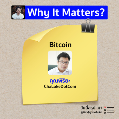 📝Why It Matters? ทำไม...ถึงสำคัญ “Bitcoin” คืออะไร? ทำไมถึงสำคัญ? ใครบ้างที่เหมาะกับ Bitcoin และถ้าอยากเริ่มศึกษา Bitcoin มีคำแนะนำอย่างไร ร่วมรับฟังและพูดคุยกับคุณพิริยะ Managing Director at ChalokeDotCom | ดำเนินรายการโดย พี พนิต เจ้าของเพจ “วันนี้สรุป..มา"