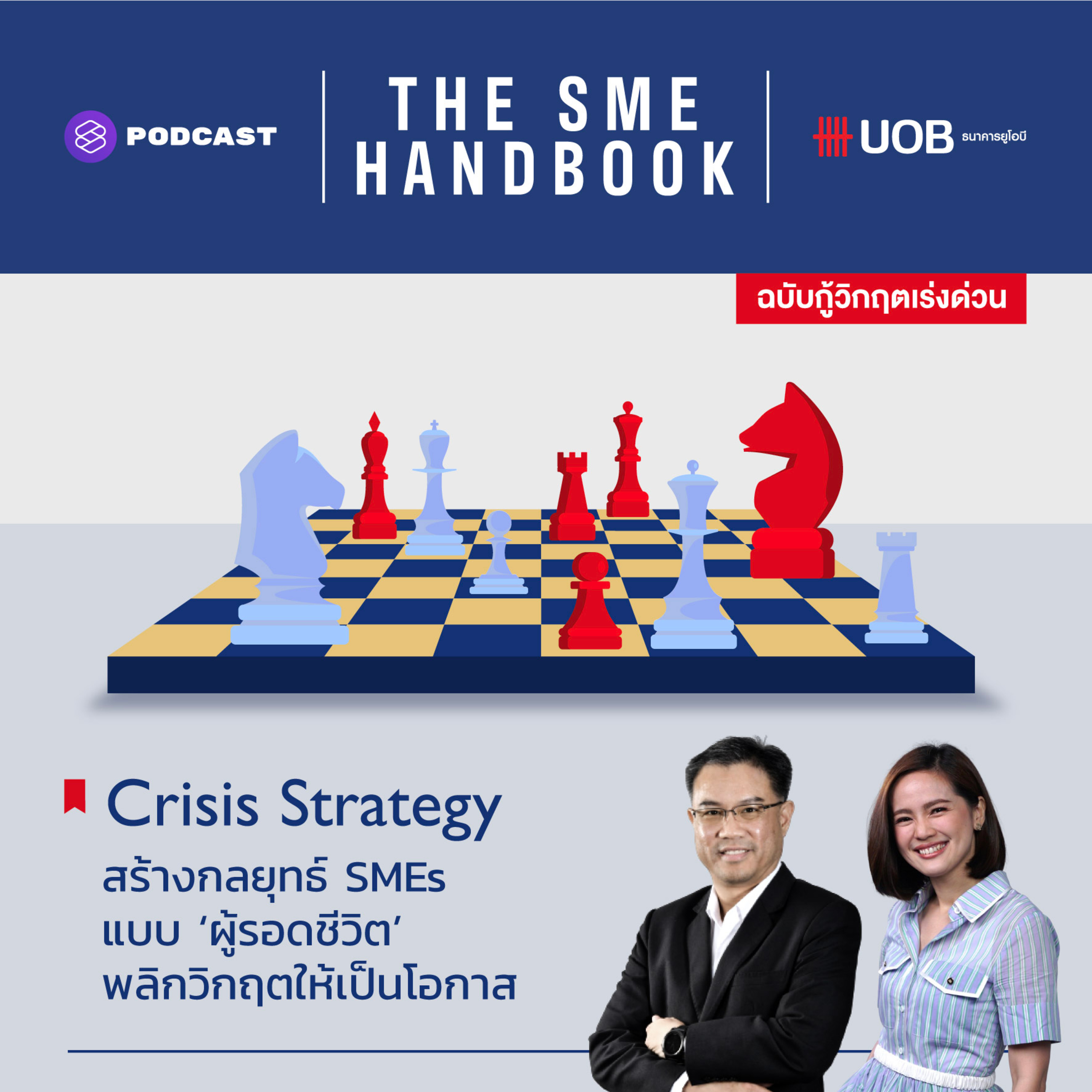 THE SME HANDBOOK by UOB เอพิโสดแรก เฟิร์น-ศิรัถยา ชวน ดร.ธนัย ชรินทร์สาร ที่ปรึกษาและวิทยากรด้านกลยุทธ์ ผู้มีประสบการณ์กว่า 20 ปี เจ้าของ Facebook Group: Strategy Essential คุยถึงเช็คลิสต์ประเมินปัจจัยสร้างกลยุทธ์ในยุควิกฤต พร้อมแจกเฟรมเวิร์กปรับตัวที่ใช้ได้จริงสำหรับผู้ประกอบการ SMEs