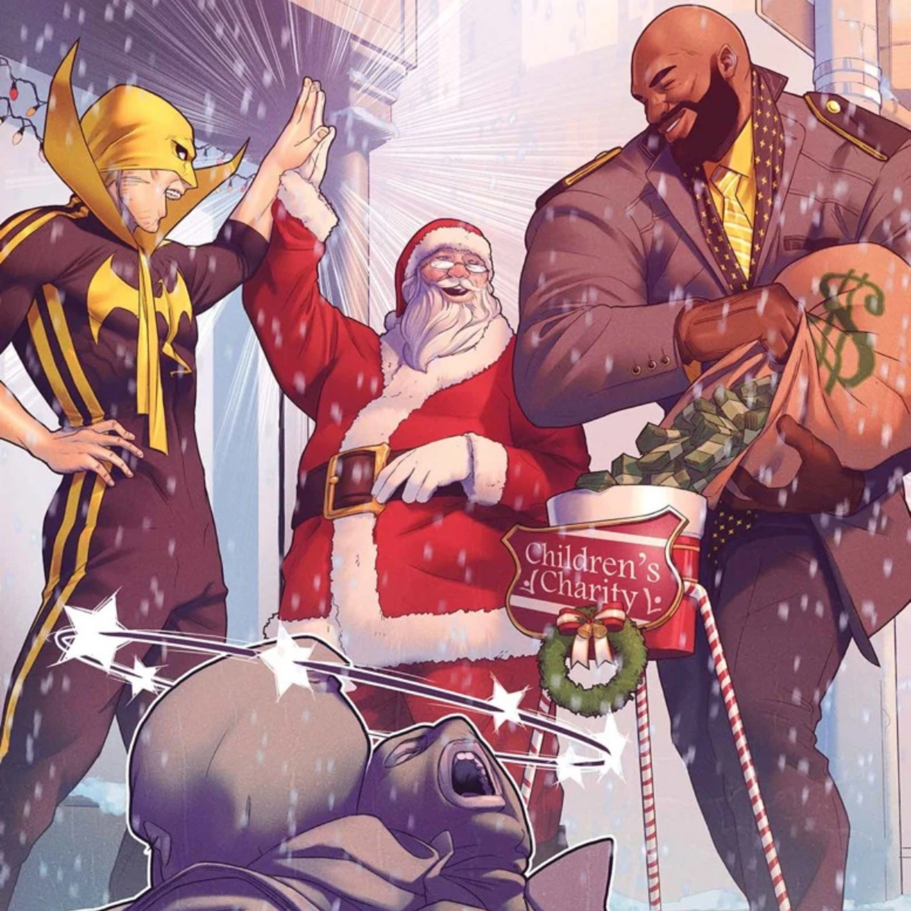 As Power Man and Iron Fist finally get one of the popular toys Danielle Cage wants, all Hell breaks loose as Damion Hellstrom and Krampus fight amongst the terrified shoppers.