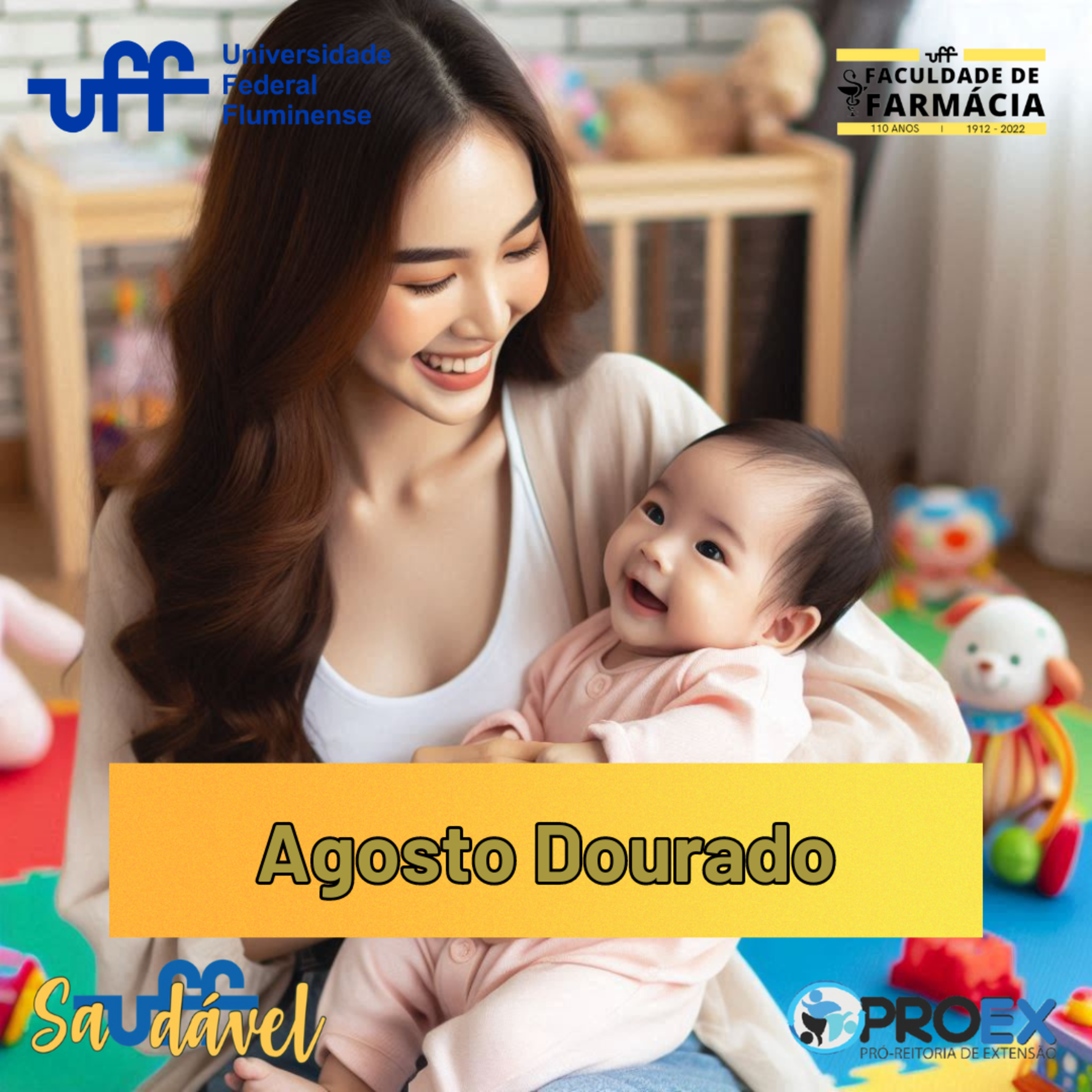 O mês de agosto é conhecido como “Agosto Dourado” por simbolizar a luta pelo incentivo à amamentação – a cor dourada está relacionada ao padrão ouro de qualidade do leite materno.