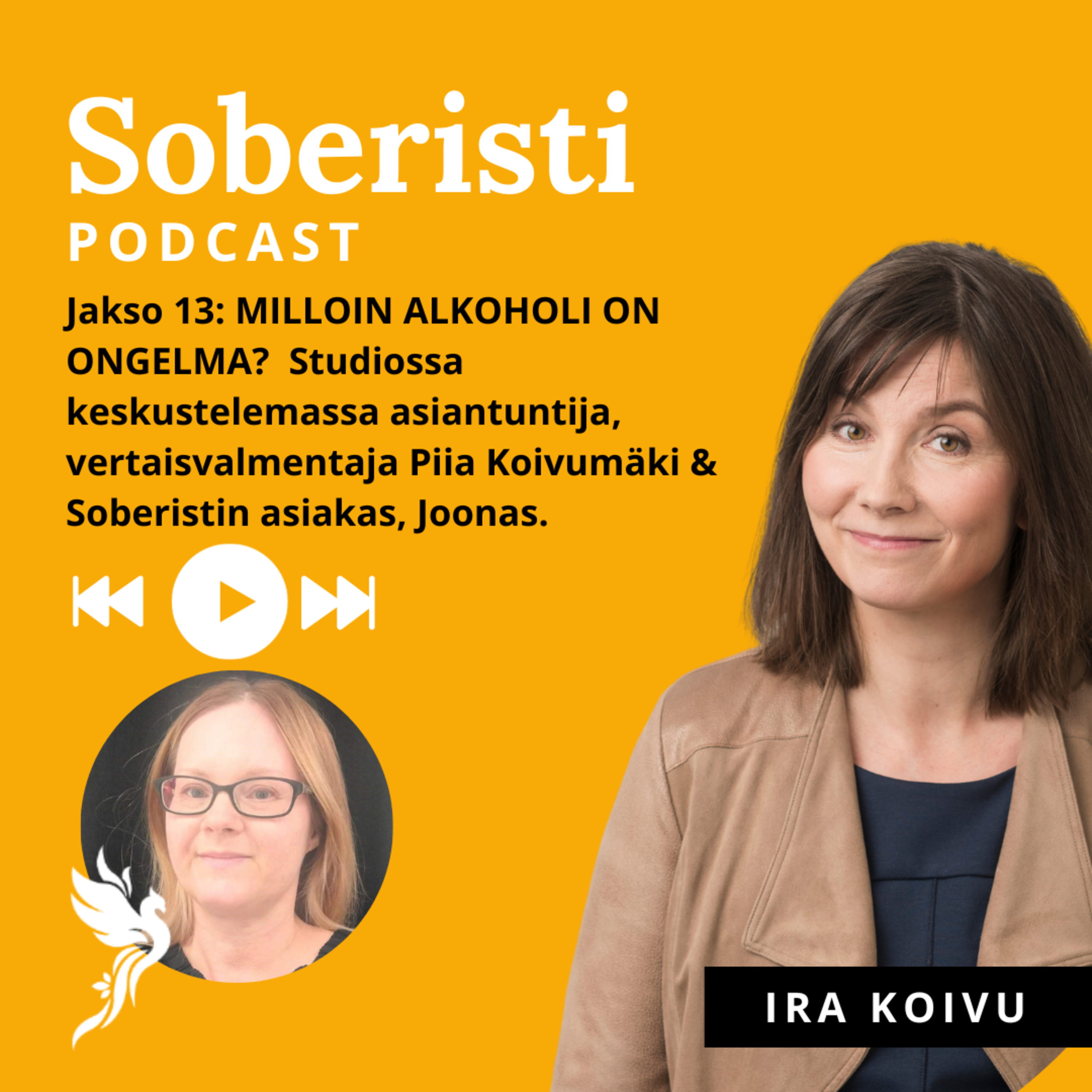 Jakso 13: MiIloin alkoholi on ongelma - Vieraana Soberistin valmentaja ja asiantuntija Piia Koivumäki, sekä Soberistin verkkokurssilta pian valmistuva Joonas.