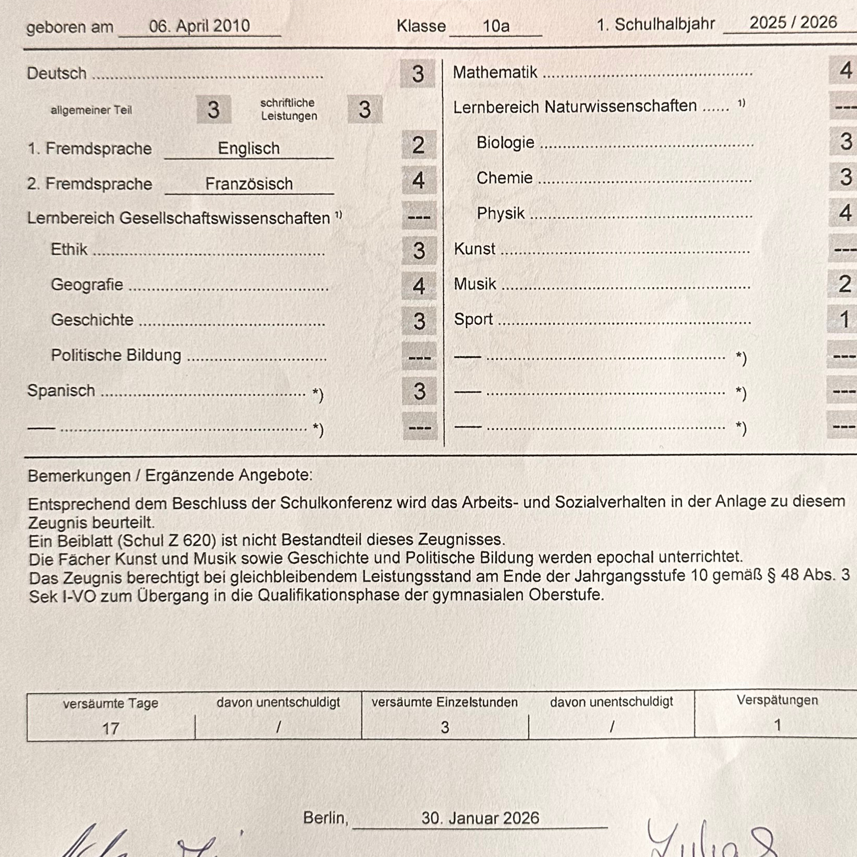 wie war euer zeugnis?