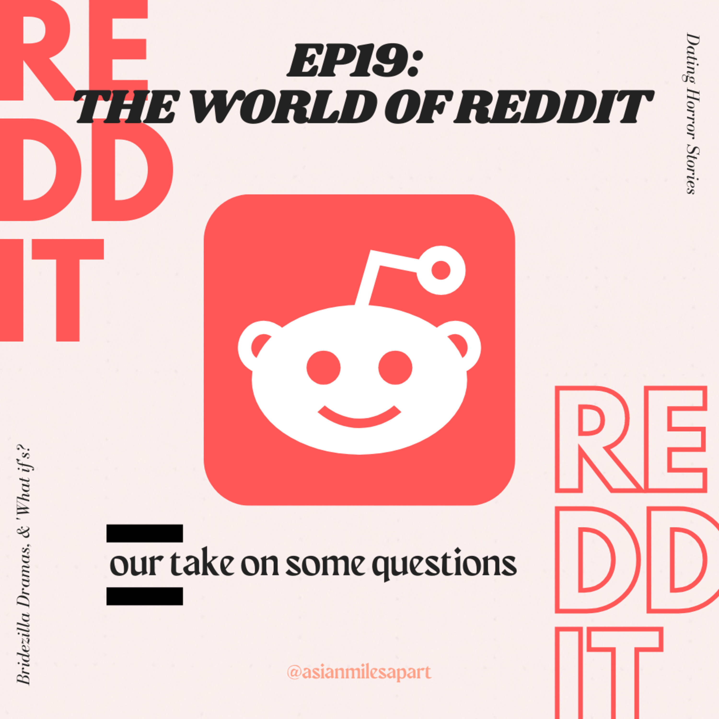 Is anyone on Reddit? To one of our hosts, Reddit can be a very addictive forum. To those who are not aware, Reddit is basically a social platform where users can ask questions or share content which would get up/downvoted , and there you can find many interesting threads (really like a gossip forum sometimes!). Join us this week as the other hosts get introduced to the world of Reddit, and we take turns answering some questions asked on the forum, including some dating horror stories, Bridezillas and "what-if"s.