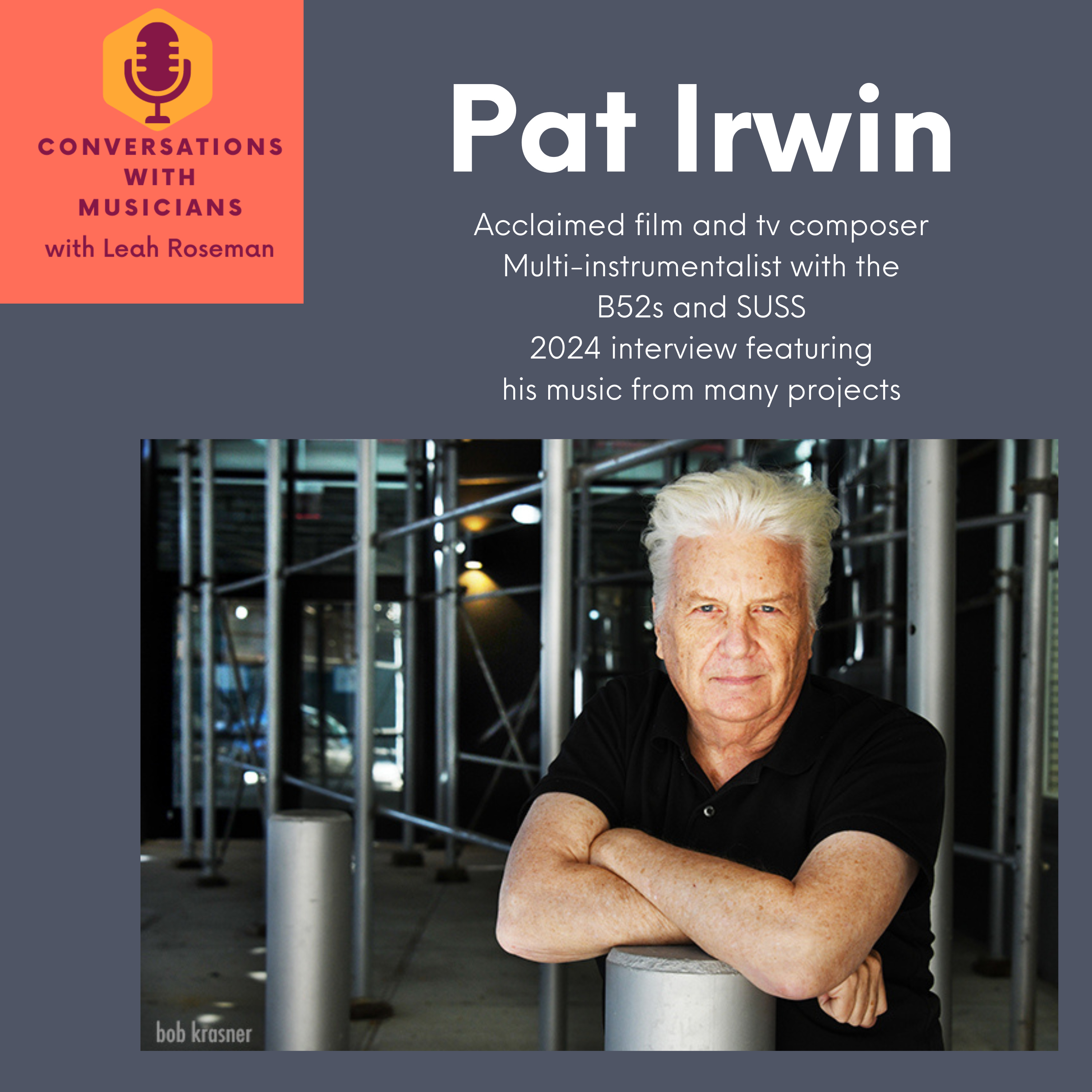 In my previous episode with him from 2023, Season 3 of this podcast, we talked about his days with the B52s and composing the score for Dexter: New Blood, and we also talked about his band SUSS and his work mentoring graduate students, and so much more . I encourage you to click on the link to that earlier episode if you missed it: https://www.leahroseman.com/episodes/pat-irwin
