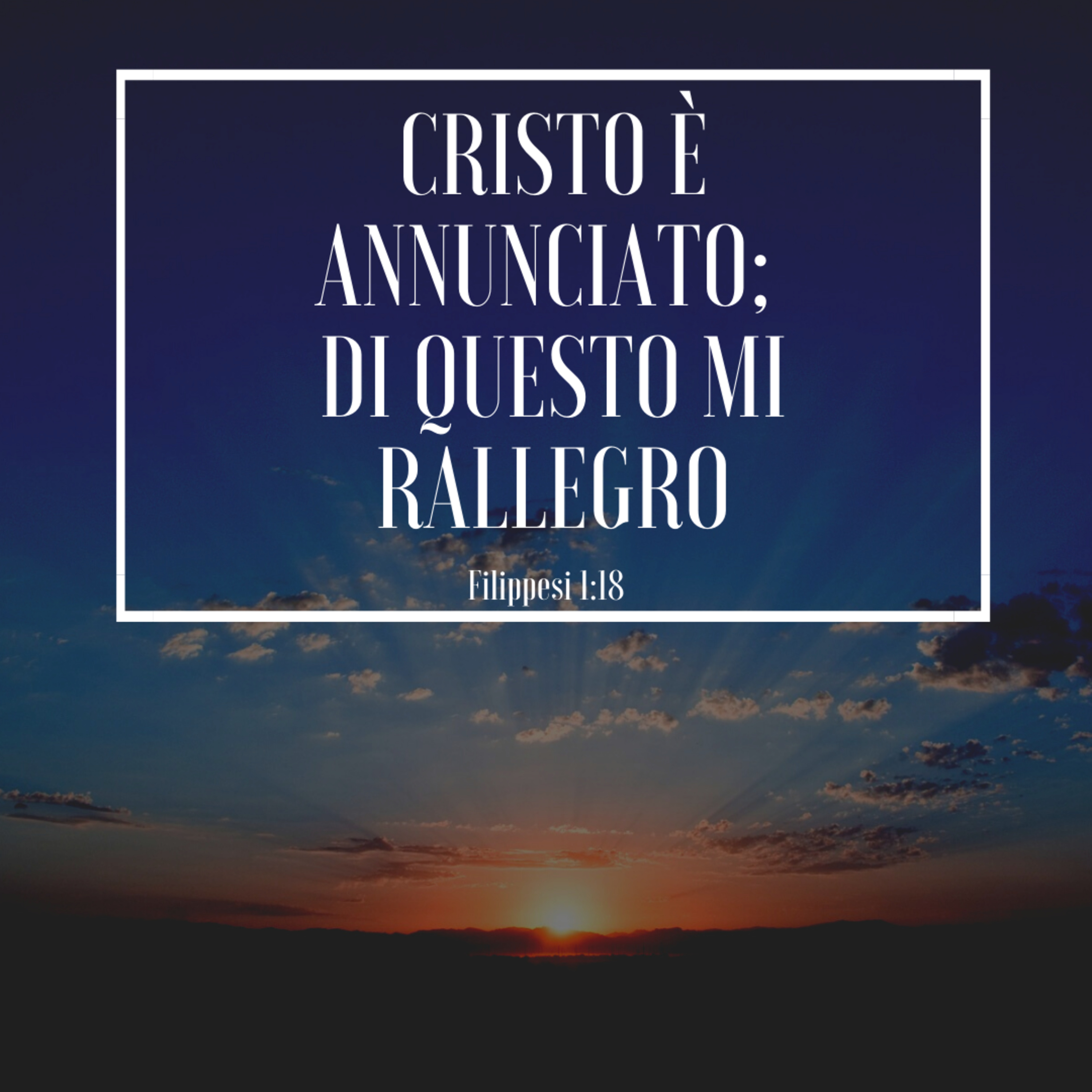 Il versetto in questione ci evidenzia è la gioia che proviamo quando il Vangelo viene annunciato.Questa gioia è totale e profonda.L' onnisciente sovrano, creatore dell’intero universo, tre volte santo… si è fatto uomo per prendere su di se la condanna del nostro male e darci la vita eterna con Lui. Questa verità ci fa gioire nello Spirito ogni qualvolta ci fermiamo a realizzarla per l’immensità dell’amore che Dio ha avuto verso di noi, del tutto immeritato; per come Dio si è completamente immerso nella sporcizia della nostra vita che farebbe inorridire chiunque, al fine di salvarci e donarci una nuova dignità, stabile è perfetta in Lui. Ci rendiamo conto di essere davvero senza parole di fronte ad una così grande Grazia ricevuta!In questo verso l’apostolo Paolo ci ricorda come provi una gioia importante nel realizzare che questa buona notizia viene annunciata, è venga fatto il più possibile. Qui riprende ed approfondisce un pensiero che già qualche tempo prima i discepoli di Gesù avevano espresso al Signore Gesù mentre era corporalmente sulla Terra. «Giovanni gli disse: «Maestro, noi abbiamo visto uno che scacciava i demòni nel tuo nome e glielo abbiamo vietato perché non ci seguiva». Ma Gesù disse: «Non glielo vietate, perché non c’è nessuno che faccia qualche opera potente nel mio nome e subito dopo possa parlar male di me. Chi non è contro di noi, è per noi.» Marco 9:38-40Gesù quindi mise ben in guarda contro ogni forma di spirito settario.Quindi noi possiamo pienamente gioire quando il Vangelo viene annunciato nelle diverse modalità che ciascuno di noi può fare per mezzo del dono che Dio stesso ci ha consegnato, purché venga salvaguardata la gloria e la santità del messaggio e del mittente, cioè Dio. «Come buoni amministratori della svariata grazia di Dio, ciascuno, secondo il dono che ha ricevuto, lo metta a servizio degli altri.» 1 Pietro 4:10 Ma in questo versetto l’apostolo si spinge addirittura oltre la forma ed arriva fino alle intenzioni per mezzo del quale si annuncia il Vangelo, arrivando ad affermare qualcosa di veramente forte. «Alcuni, è vero, predicano Cristo solo per gelosia e in polemica con me… sono spinti da invidia, non annunziano Cristo con sincerità e pensano di aggravare le mie sofferenze ora che sono in prigione.» Ma se tutto questo serve affinché venga divulgato il più possibile la buona notizia, io me ne rallegro!Con questo non sto dicendo che ci troviamo necessariamente in questa condizione così estrema, perché ringraziando Dio probabilmente mai o comunque raramente ci troveremo a vivere una simile situazione. Quello che invece molto più frequentemente possiamo però trovarci a vivere, sono le umane simpatie o antipatie che rischiano di offuscare ciò che dev’essere sempre di più la ragione principale della nostra gioia: Cristo annunciato! Lo Spirito Santo quest’oggi c’incoraggia a gioire pienamente nel fatto che Cristo venga annunciato, a prescindere da ogni cosa. C’invita a trovare sempre di più piena unità nella sola cosa che maggiormente deve interessarci; potremmo ritrovarci ad avere molteplici idee differenti su tantissimi argomenti, modi di essere e pensare, modi di fare ed agire, usi e costumi culturali differenti, comportamenti e motivazioni differenti… ma tutto questo conta davvero nulla: troviamo piena è perfetta unità nel gioire che il Vangelo venga annunciato! E vogliamo farlo con una passione sempre più rinnovata, un entusiasmo nuovo e travolgente, ma sopratutto con la pienezza dello Spirito Santo in noi perché posa essere pienamente efficace nel raggiungere i cuori. Oggi è il momento migliore per farlo, e lo faremo non solo attraverso il messaggio che verrà annunciato, ma ancora di più saranno le nostre azioni ad annunciarlo! Ogni gesto d’amore, ogni espressione sincera della gioia di Dio in noi lo annuncerà! La piena e perfetta unità nella gioia che il Vangelo viene annunciato sia la spinta trainante della nostra esistenza!