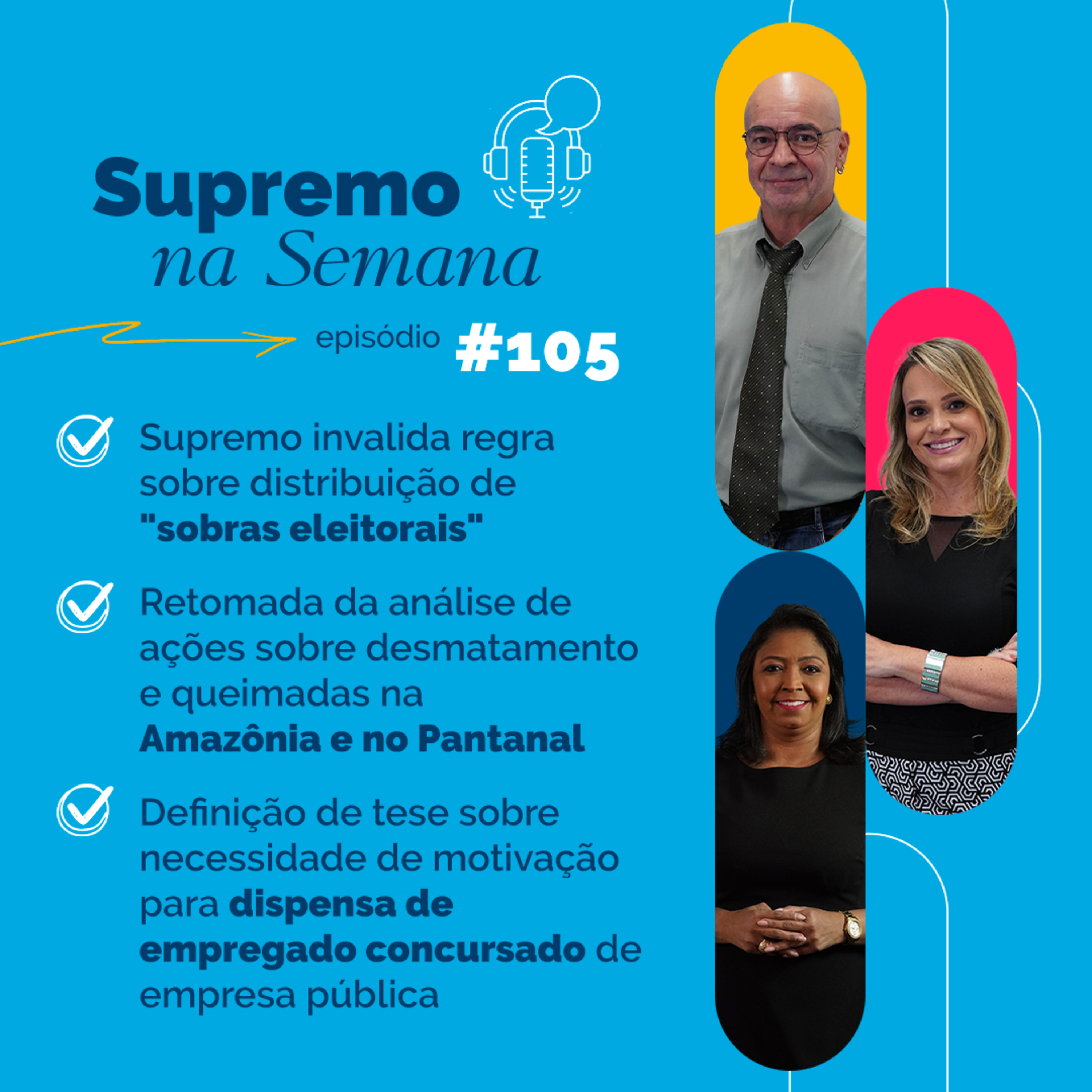 O episódio também trata da retomada da análise de cinco ações sobre desmatamento e queimadas na Amazônia e no Pantanal. Outro tema é a definição de uma tese estabelecendo que as empresas públicas devem apresentar justificativa razoável para demitir empregadas e empregados concursados.