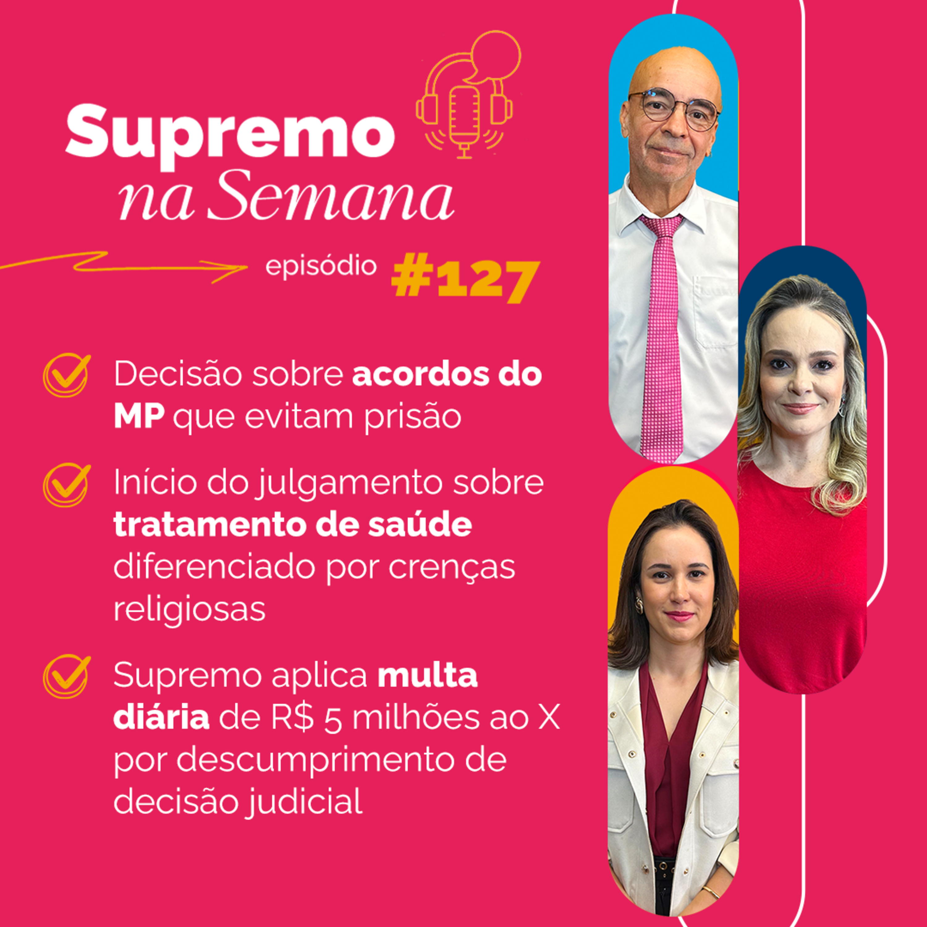 O episódio também analisa o início do julgamento de dois recursos que discutem se a liberdade religiosa de uma pessoa justifica o custeio de tratamento de saúde diferenciado pelo poder público. Os casos envolvem pessoas da religião Testemunhas de Jeová, que não permite a transfusão de sangue.