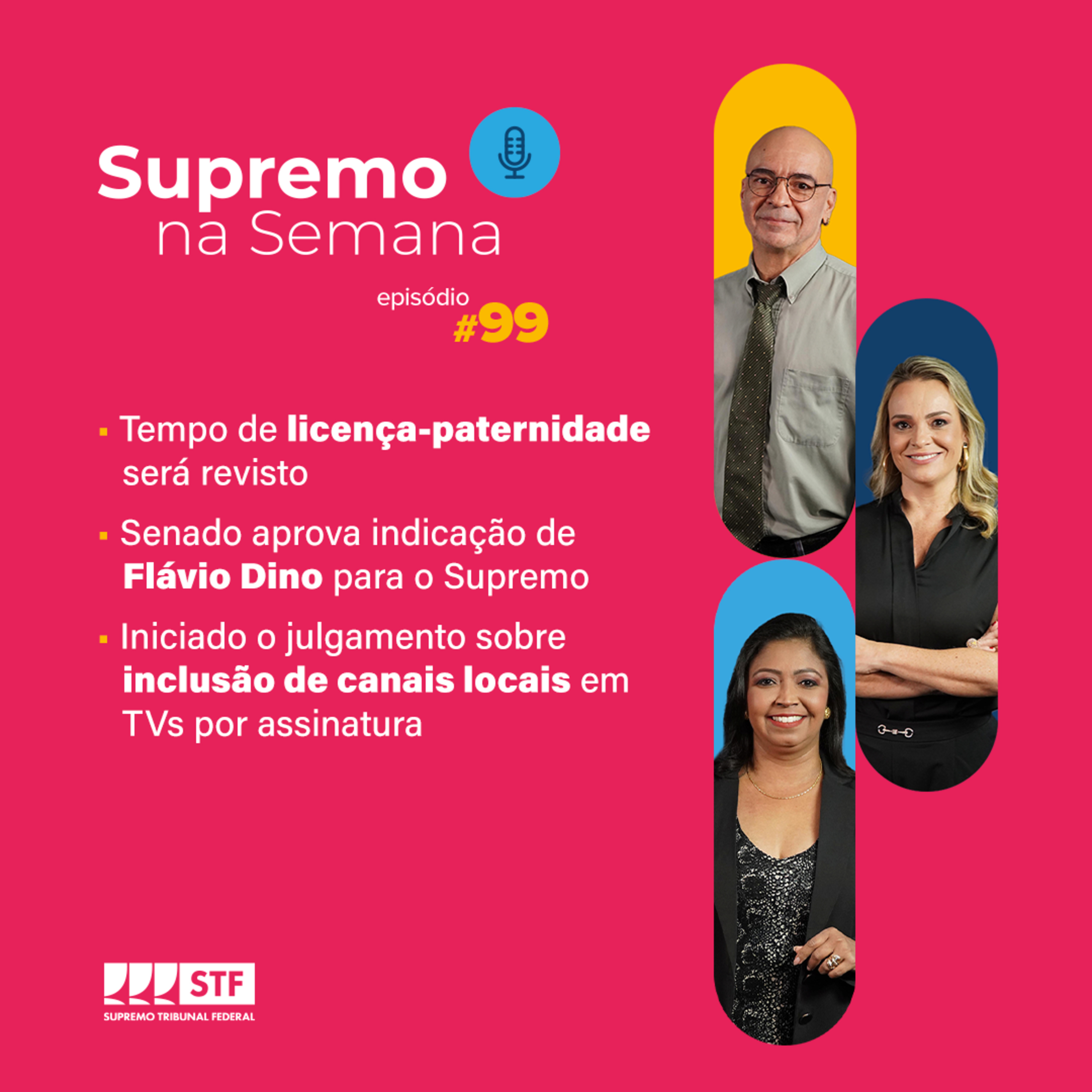 Esta edição do Supremo na Semana é apresentada por Alessandra Castro, editora-chefe na Rádio e TV Justiça, e tem comentários de Gisele Reis, consultora jurídica da Rádio e TV Justiça, e de Mauro Burlamaqui, da Secretaria de Comunicação do STF.