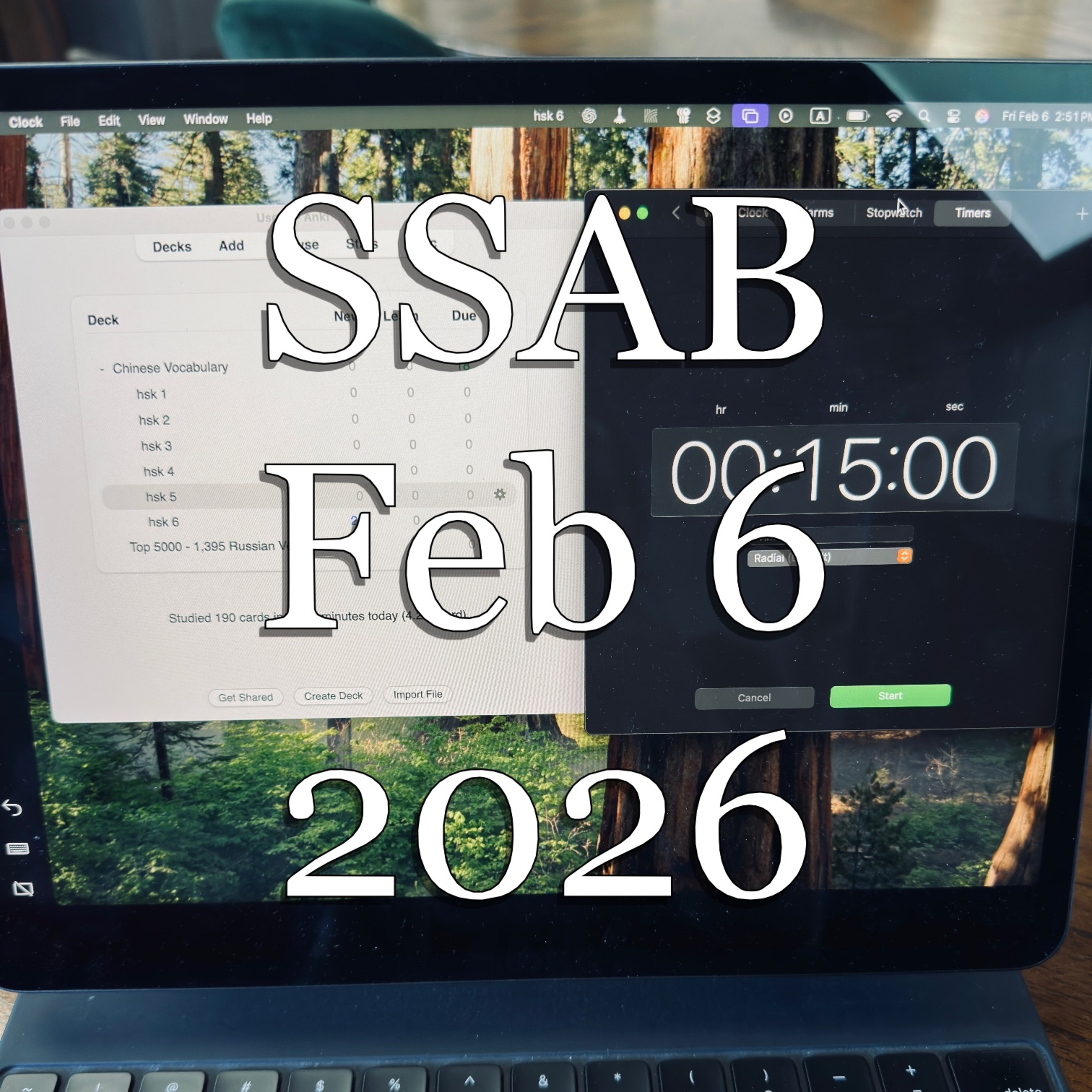HSK 6 flash cards. Also working through HSK 1-5, spending about 30 minutes a day so far. I hope to keep this up as it’s something that needs to be done.