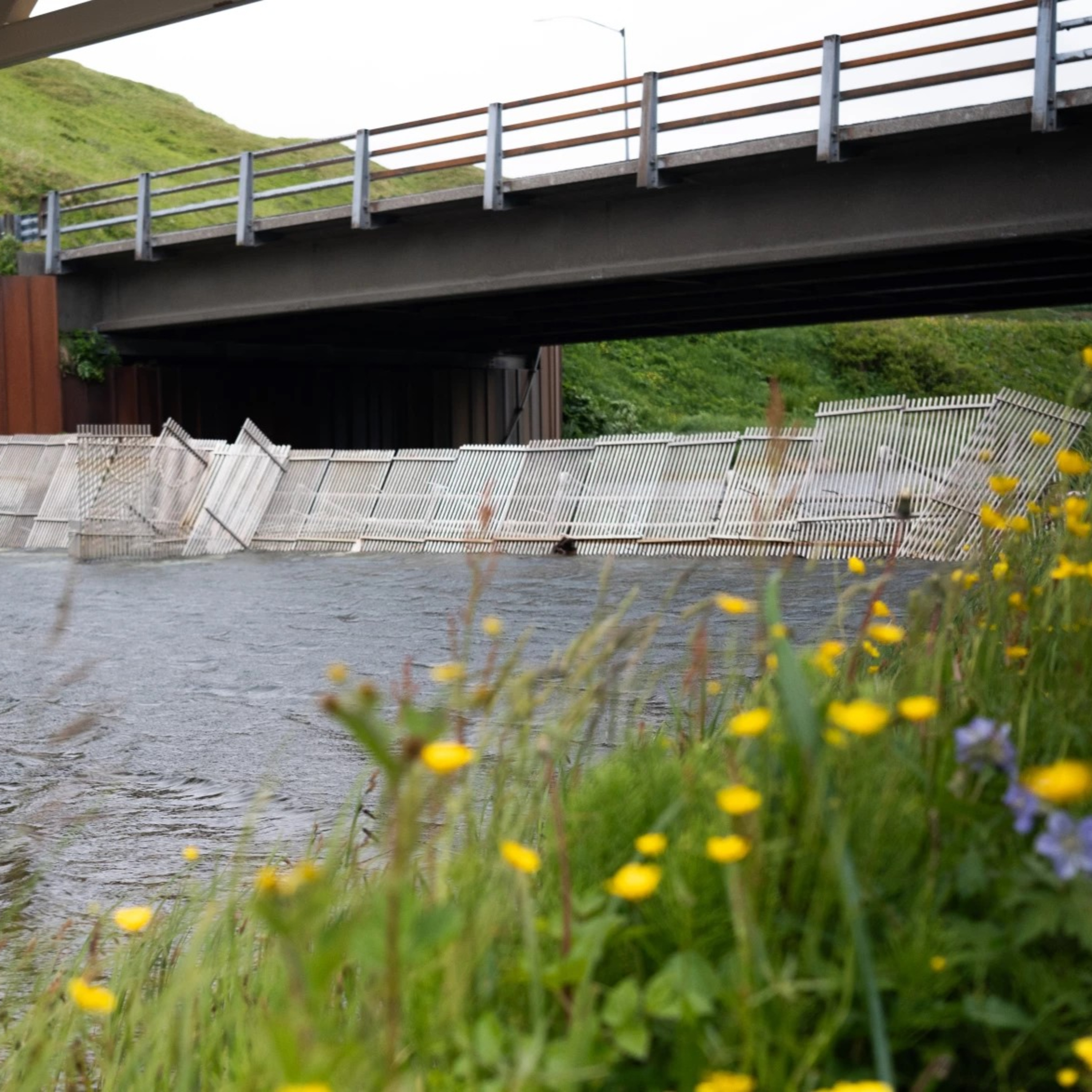 Photo: The Iliuliuk Lake weir is located behind the Unalaska Senior Center, between the newer pedestrian bridge and the vehicle bridge. (Kanesia McGlashan-Price/KUCB)