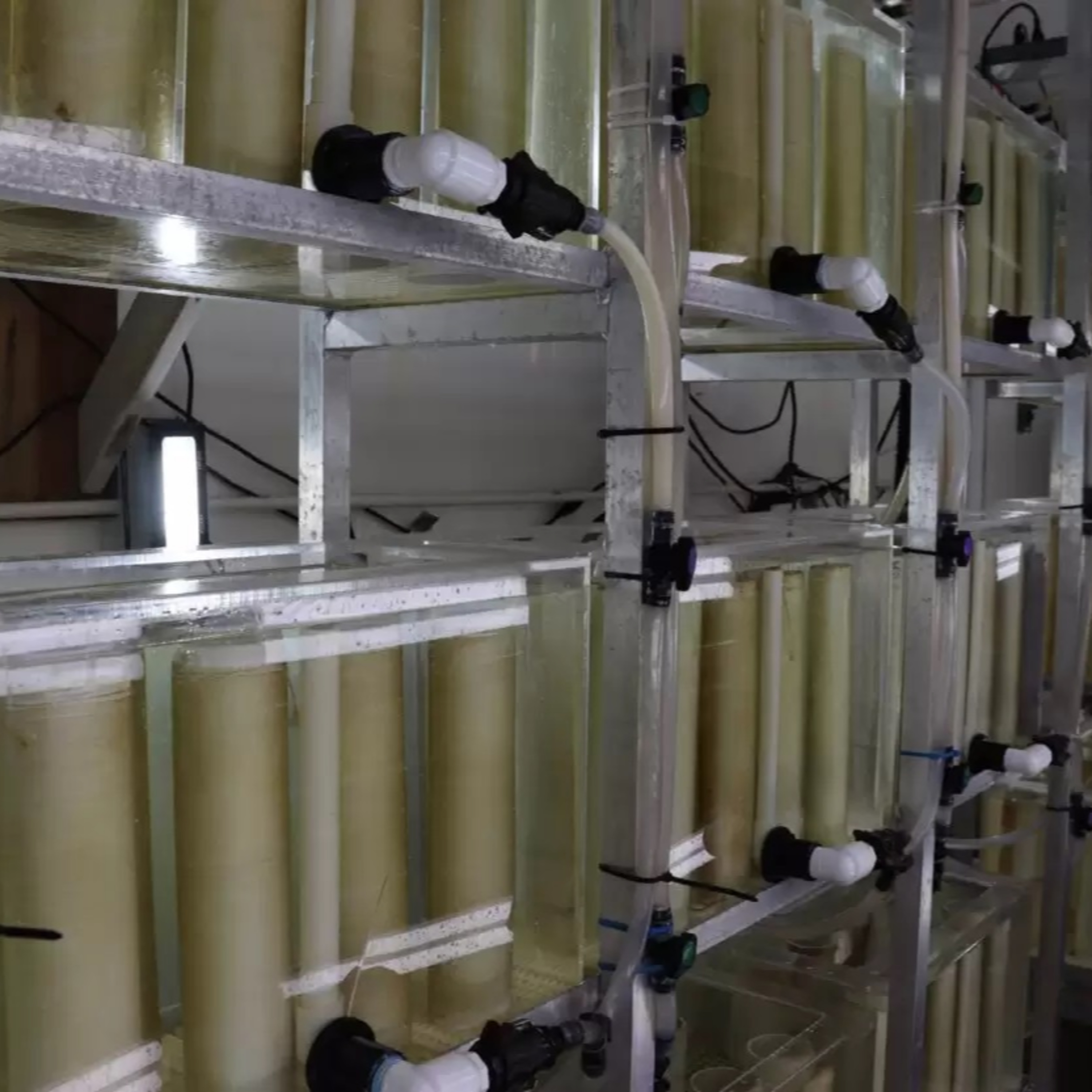 Photo: Young kelp plants grow inside water tanks at Premium Aquatics’ hatchery in Ketchikan. (Hunter Morrison/KRBD)