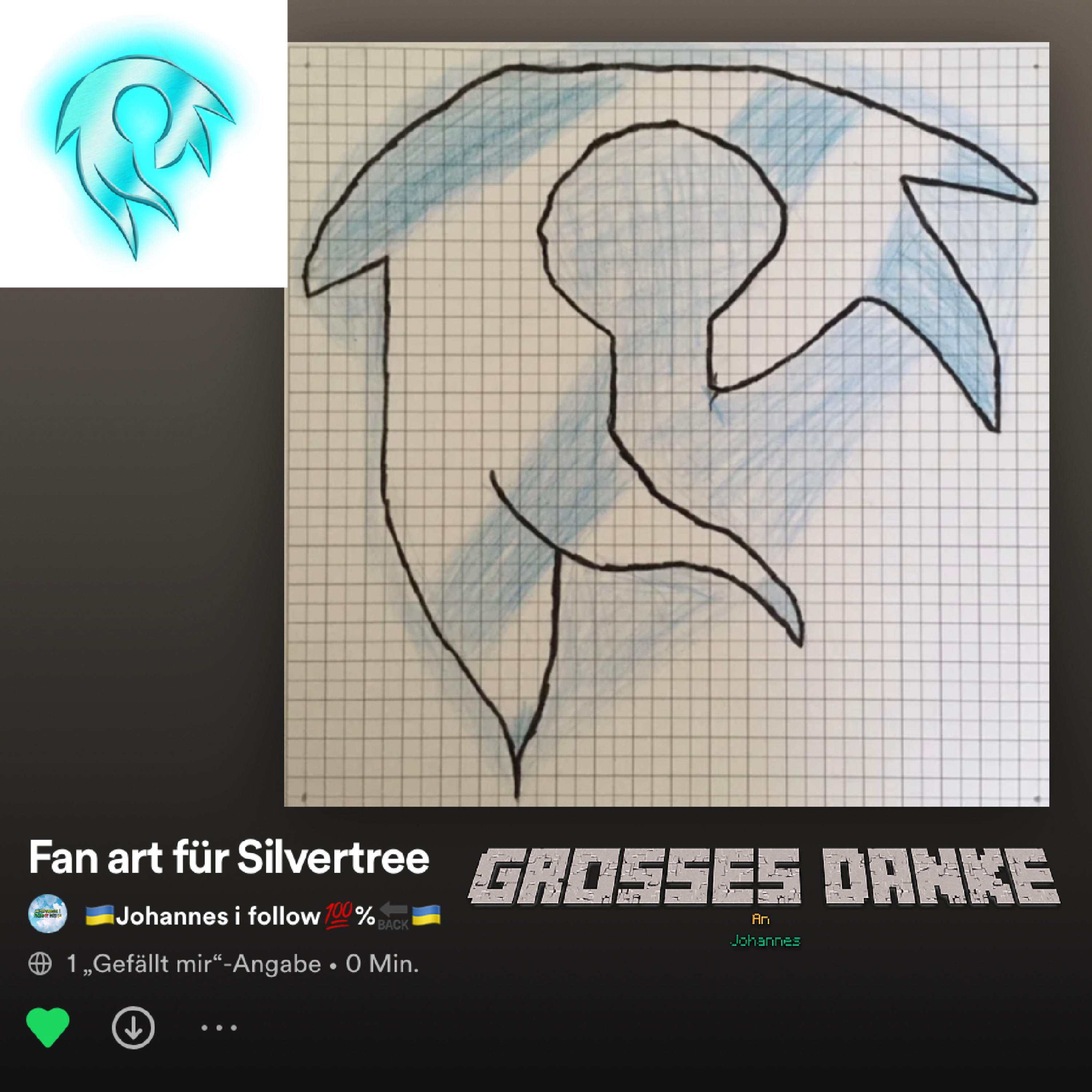 Ich habe ein Fanart von einem Zuhörer gekriegt (Johannes). und Ruffe hiermit zu einem Fanart Wetbewrb aus. Schreibt euren Spotifytag in die Kommntare. Und erstellt auf eurem Acound eine Playlist. Hier ein Beispiel: Hallo BAUM ich höre dich gerne mein Spotify heisst:BAUMghgFan Liebe grüsse BaumGhG.