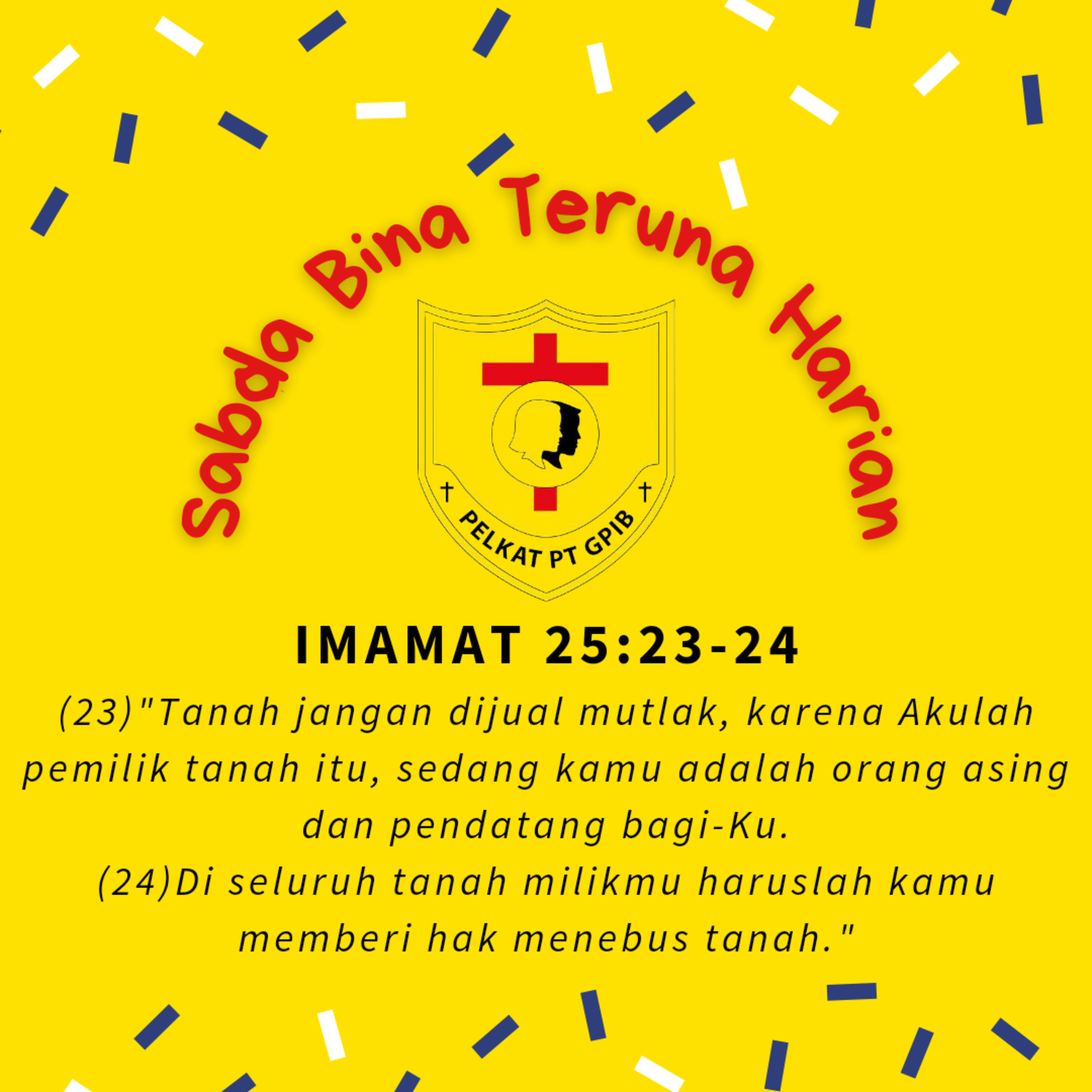 bacaan Alkitab terambil dari Imamat 25 : 23-28 ------ DIGADAI&DITEBUS 😇