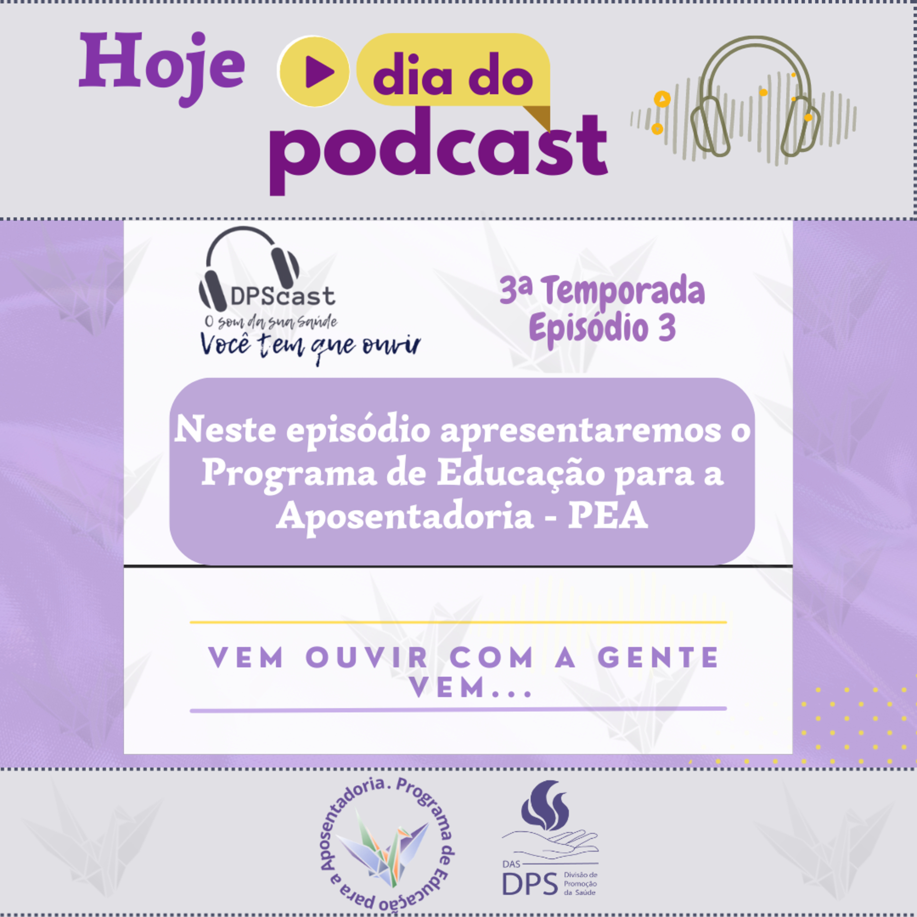 Nesse terceiro episódio da terceira temporada, o DPScast apresenta o Programa de Educação para a Aposentadoria - PEA, um dos programas temáticos oferecidos pela DPS, a Divisão de Promoção da Saúde da UFRGS.