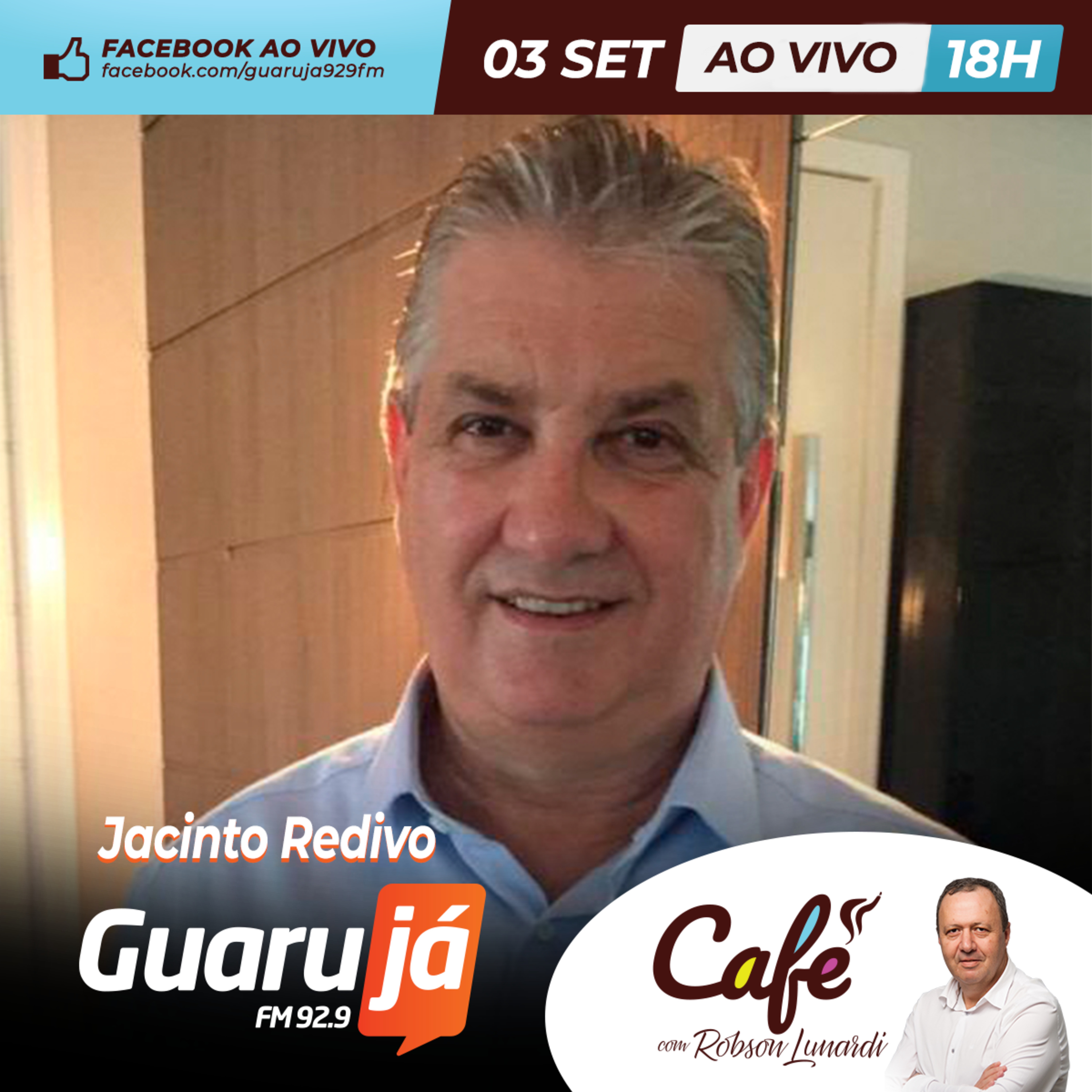 🎙️ Café ☕especial a partir das 18h na 92.9 FM Guarujá com o ex-prefeito, Jacinto Redivo.