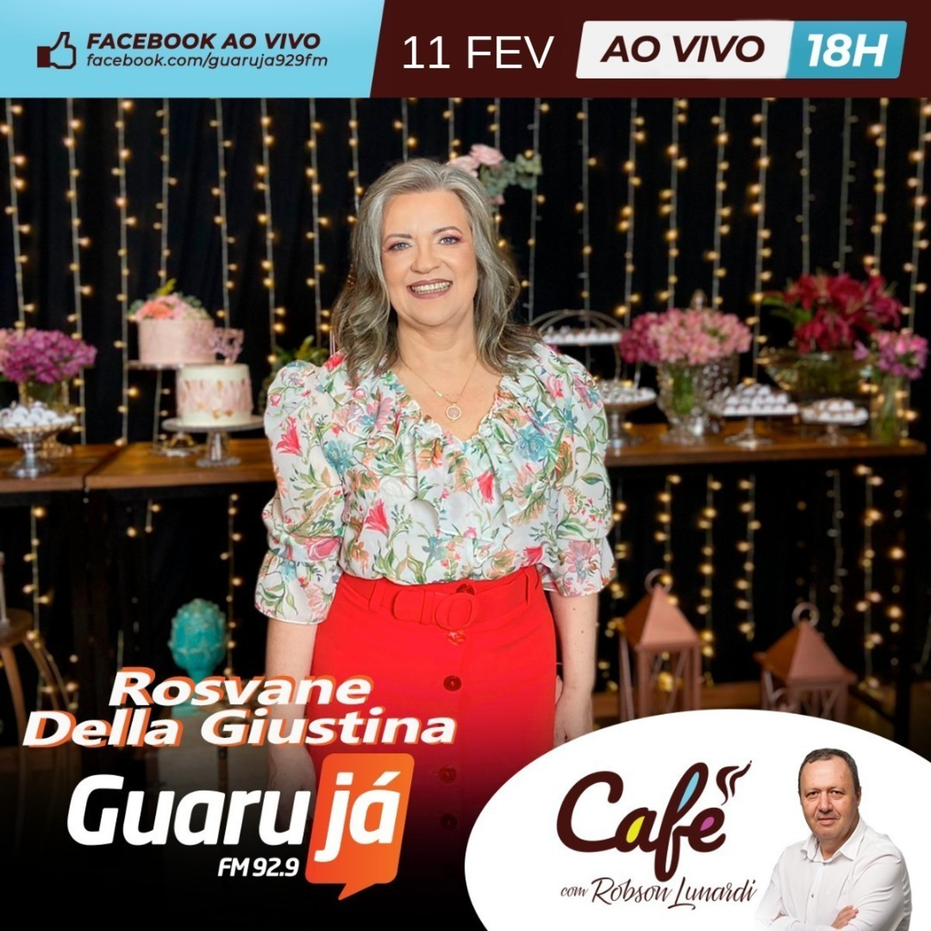 🎙️ Café ☕especial a partir das 18h na 92.9 FM Guarujá, com Rosvane Della Giustina