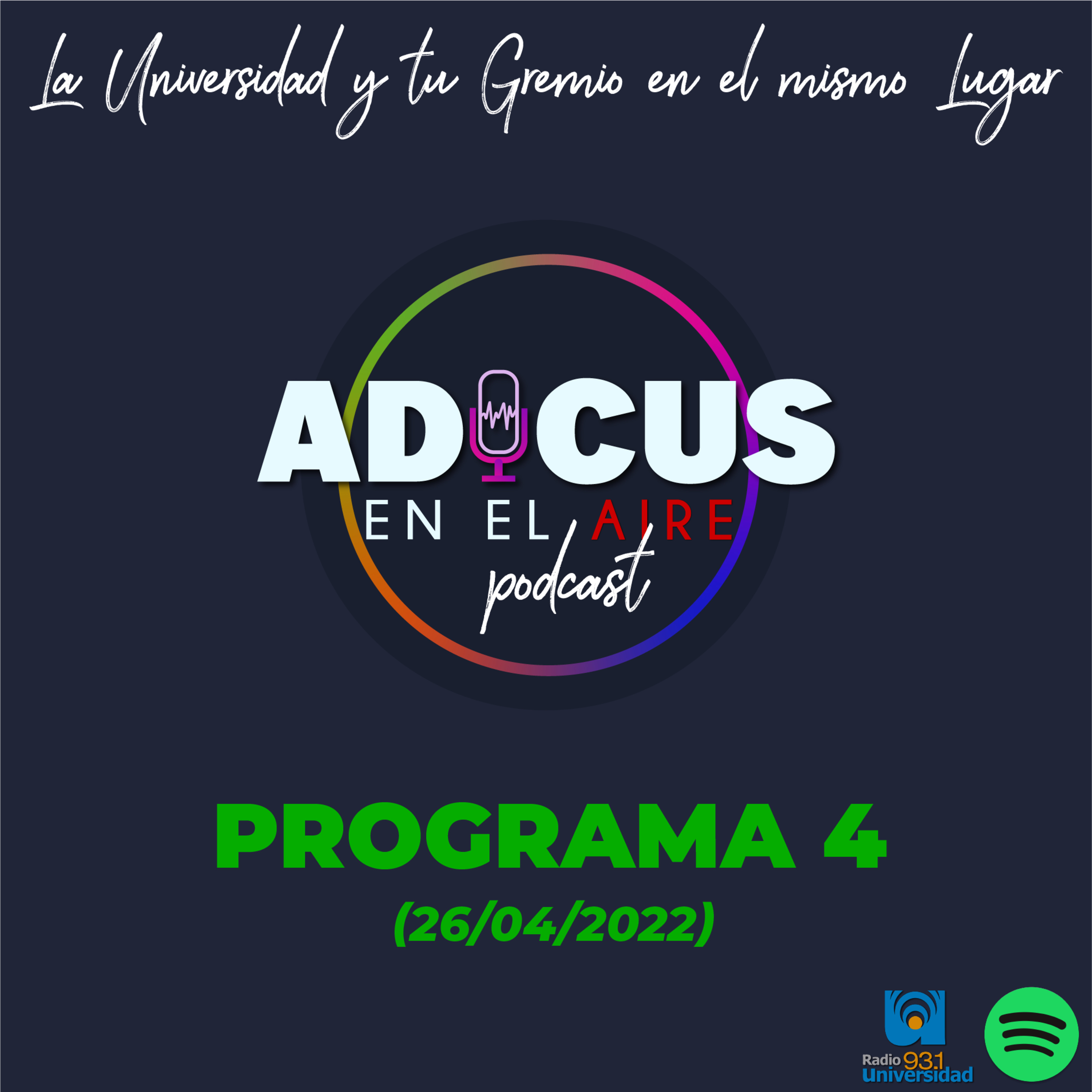 ADICUS en el AIRE formato podcast, la tercera emisión realizada por FM 93.1 Radio Universidad el día martes 26 de abril de 2022.