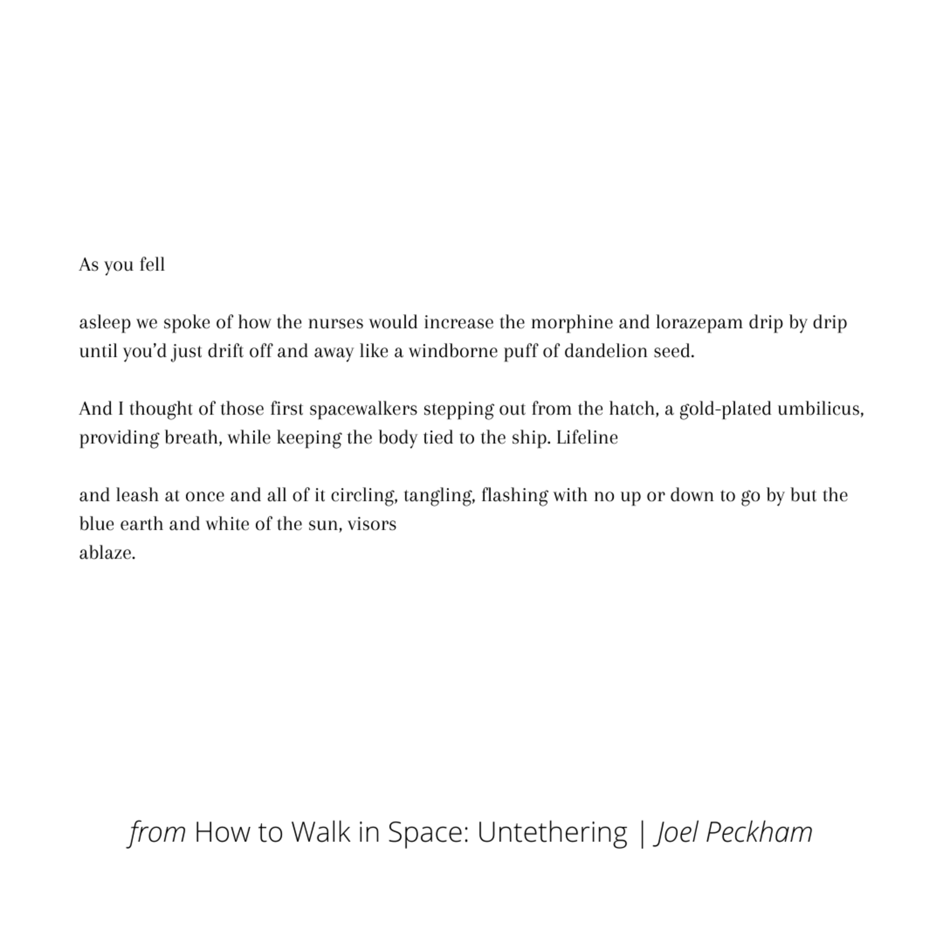 Joel Peckham reads his poems, "How to Walk in Space: Untethering" and "How to Walk in Space: 3:35AM Dec 9, 2022."