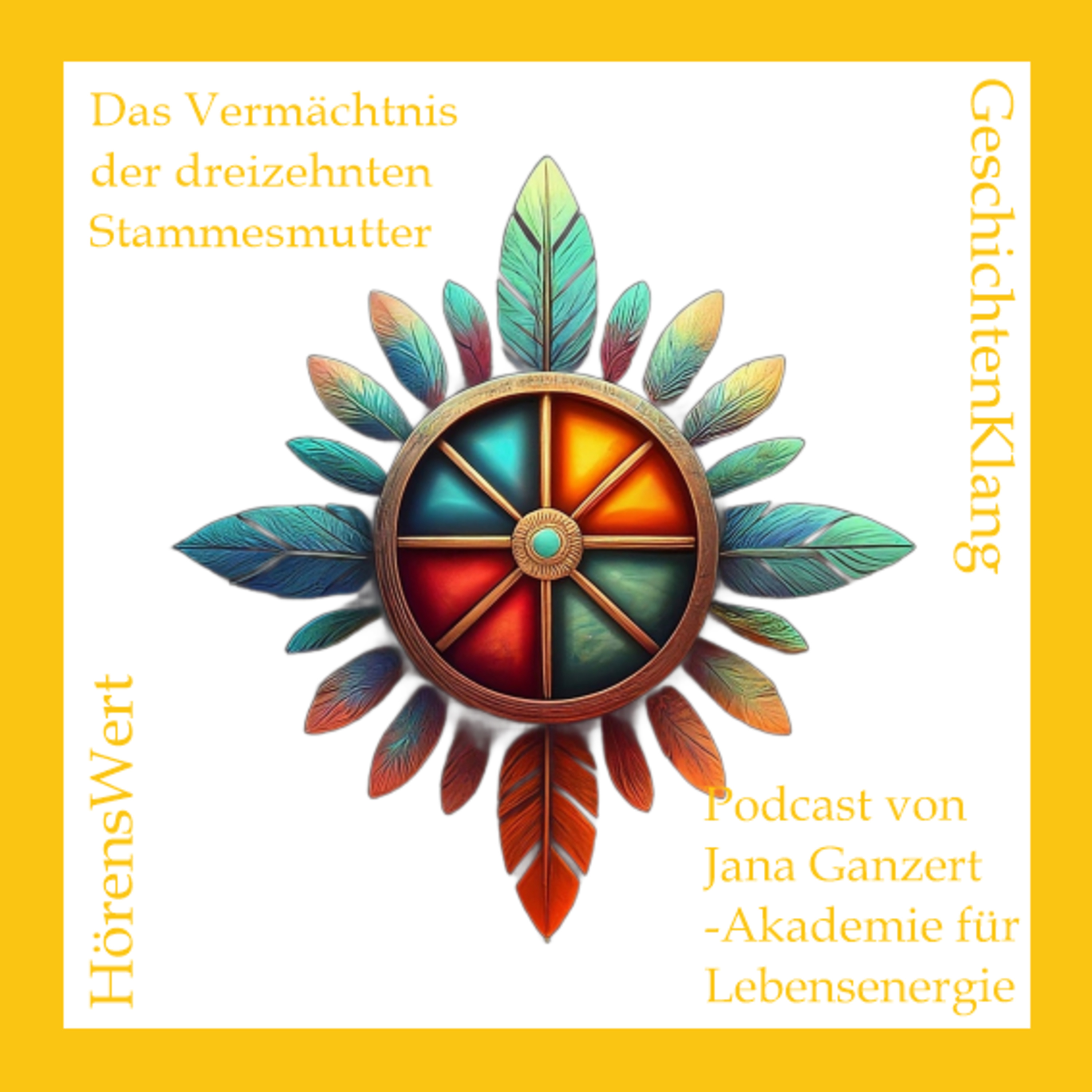 In der Mitte des Kreises erhält die dreizehnte Stammesmutter die Geschenke von ihren zwölf Schwestern und vereint sie in der höchsten Vision - eine Einladung an uns, immer auf dem Weg zur höchsten Form von uns selbst zu bleiben