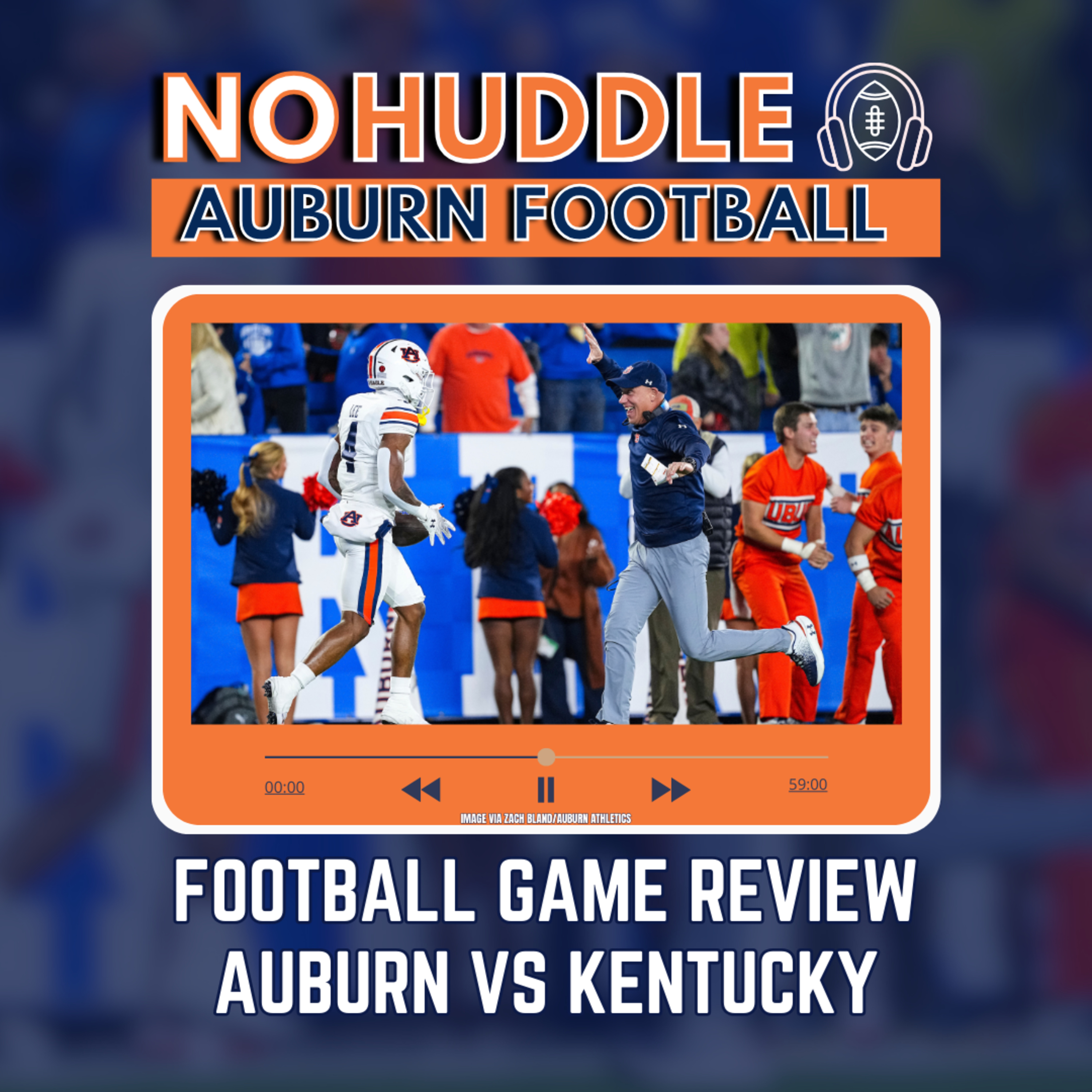 Auburn football podcast with co-hosts AJ Richardson and Jared Davis. The main discussion covers a review of the 2024 game vs. Kentucky.