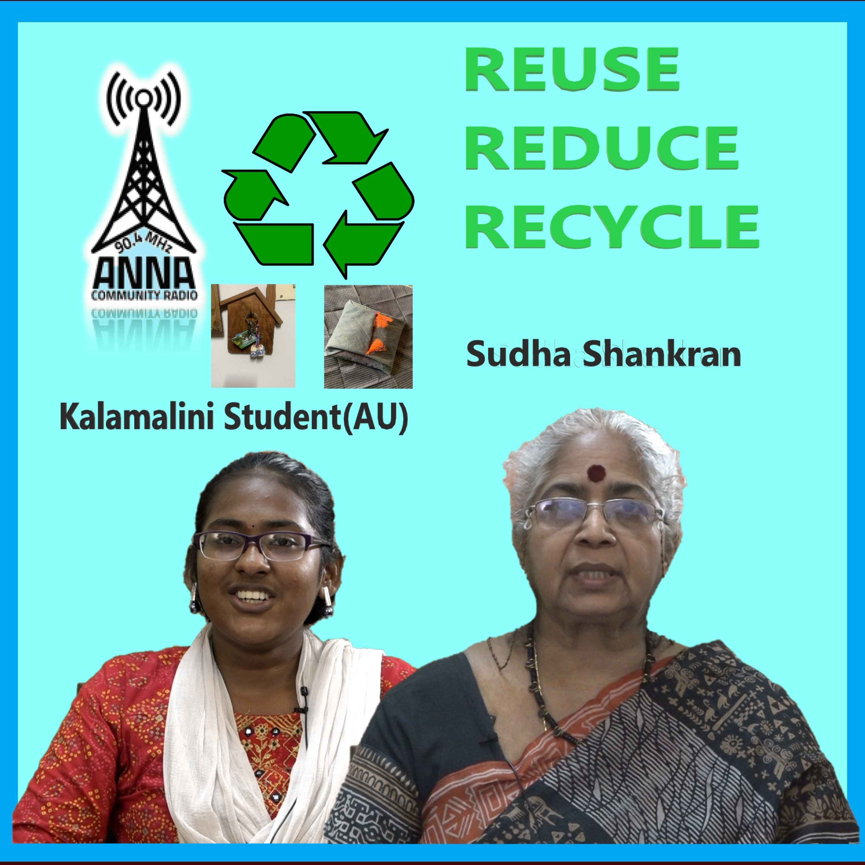 SudhaShankran explains about the reuse of old materials in connection with the waste management. Interviewed by Kalamalini (StudentAU)