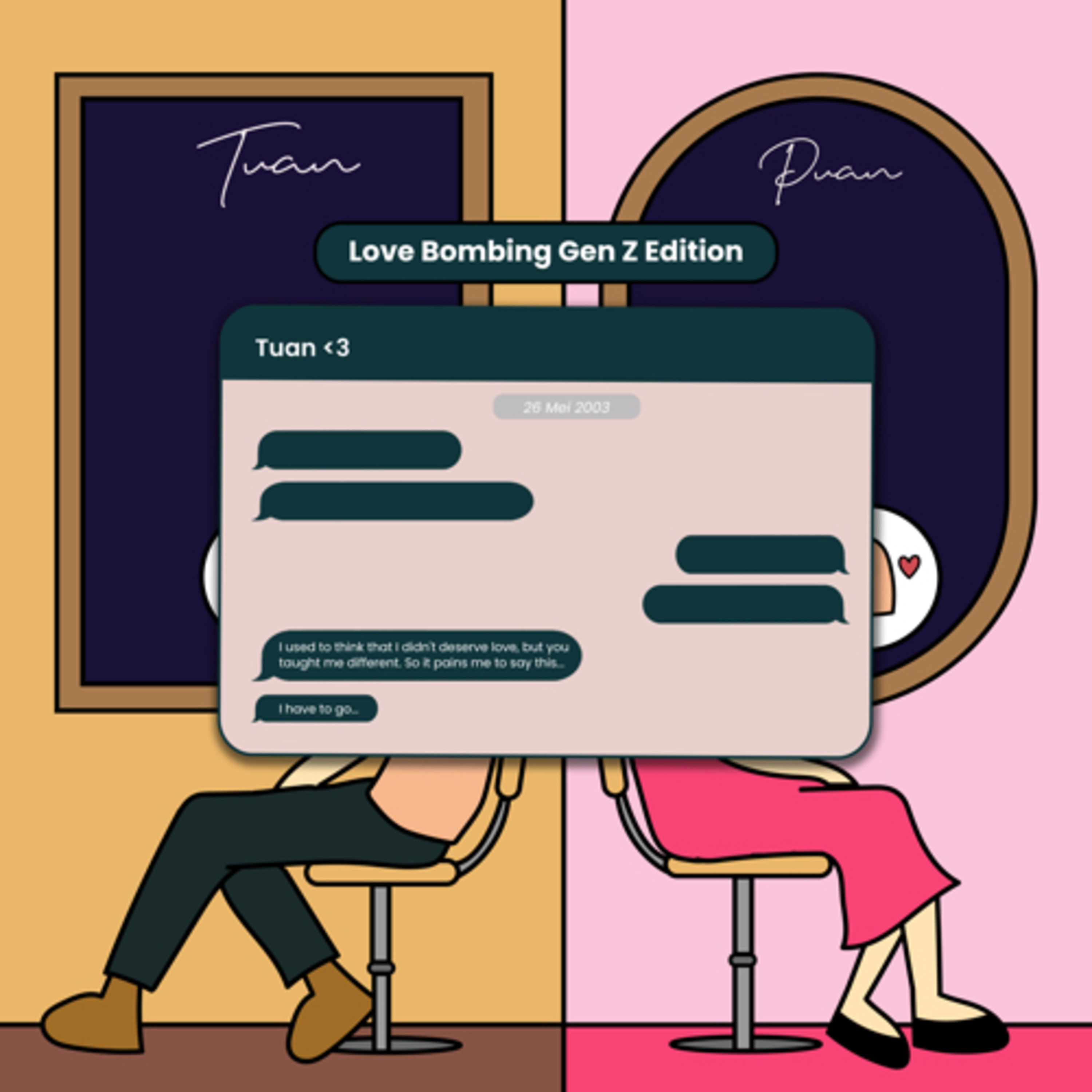 Sekarang kisah percintaan GenZ kayaknya identik sama Love Bombing deh🙃. Karena bisa tiba-tiba dateng, kenalan, deket, ngerayu, ngeluarin semua word of affirmation, eh tiba-tiba ngilang aja gituuu aka lost contact…. Niatnya serius, eh kena Love Bombing bahkan berakhir jadi Second Choice azzaa😵💫🤏🏻