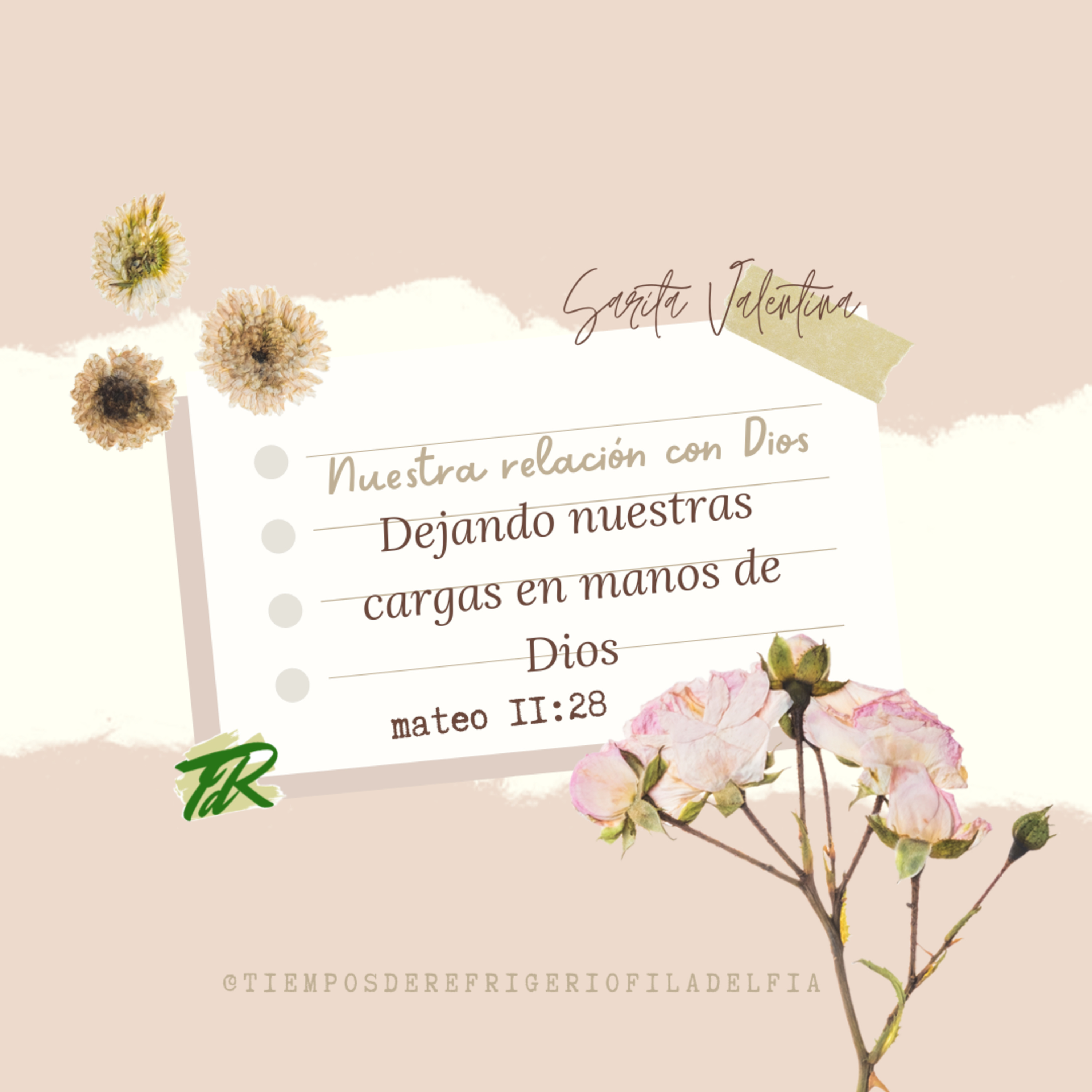 “Luego dijo Jesús: «Vengan a mí todos los que están cansados y llevan cargas pesadas, y yo les daré descanso.”