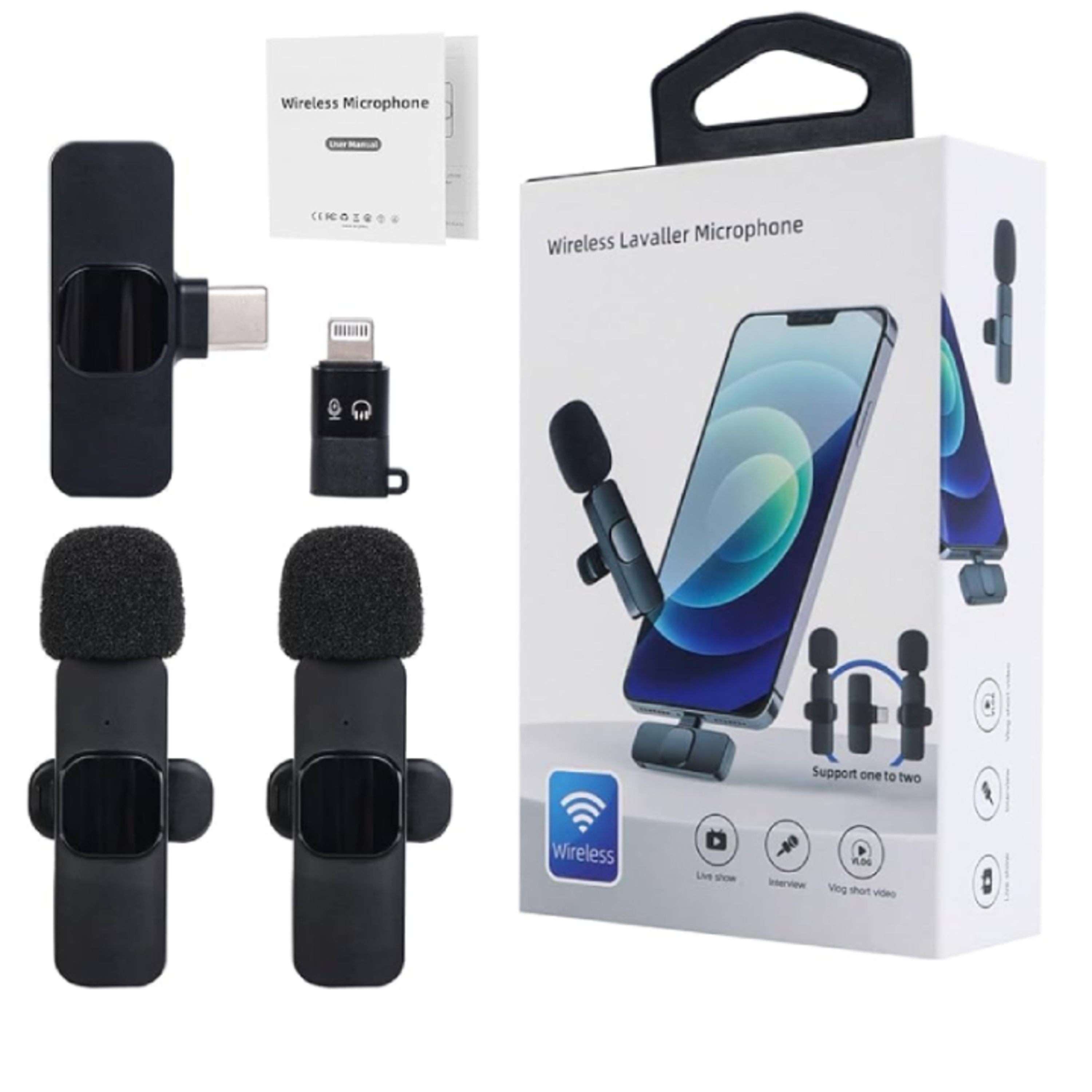 Con un estuche llamativo y una presentación agradable veremos lo que hay dentro: dos micrófonos inalámbricos y de solapa te dan la bienvenida 🤗 con un adaptador para iPhone e Android mas un cable para la carga, y ahí mismo noto las de ventajas pues un solo cable para dos dispositivos no es lo recomendable eso quiere decir que tendría que haber un dese cable o un solo cable que conecte los dos micrófono para su posterior carga. (pero probémoslos)