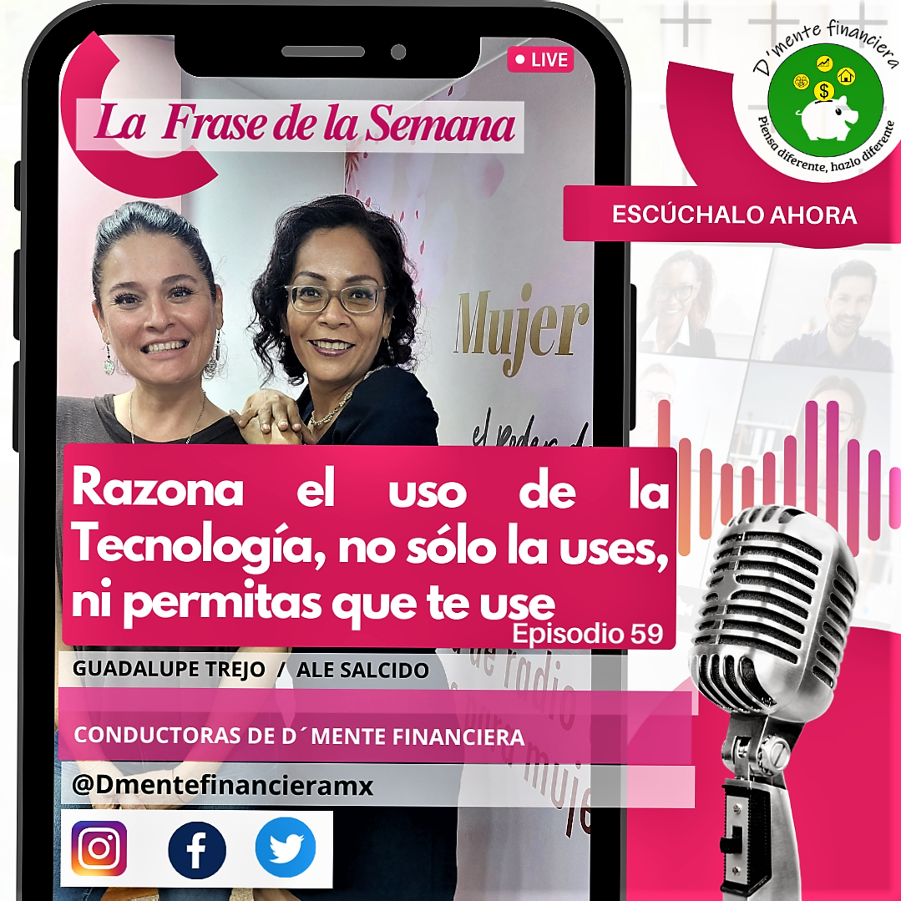 No dejes de escucharnos todos los martes a las 7:00 p.m. a través de nuestras redes sociales y www.soymujerradiante.com con diferentes temas relacionados con el ámbito financiero en todos los aspectos cotidianos: previsión, planeación, economía, finanzas e inmuebles. Desarrolla, aprende y cultiva con nosotras tu cultura financiera de la mano de especialistas en cada uno de estos temas que con sencillas herramientas y estrategias harán que tus finanzas personales, familiares y las de tu negocio sean más sanas y productivas para tomar las decisiones correctas y alcanzar la libertad económica que siempre has querido. SÍGUENOS EN REDES SOCIALES D’mente Financiera – https://www.facebook.com/DmentefinancieraMX https://www.instagram.com/dmentefinancieramx ADS seguros – https://www.facebook.com/adssegurosmx https://www.instagram.com/adssegurosmx Geometry Real Estate – https://www.facebook.com/geometryRE https://www.instagram.com/geometryrealestate